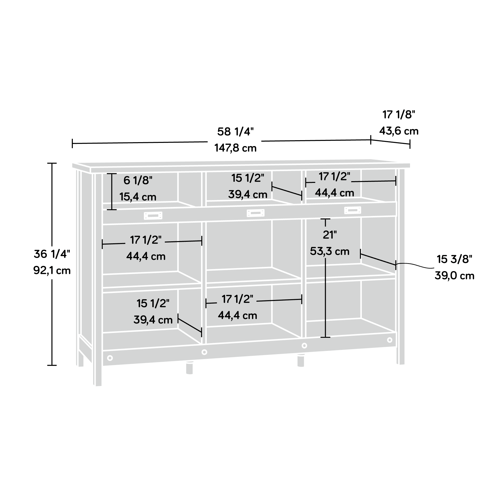 Sauder 417653 Adept Storage Credenza. Soft White Finish