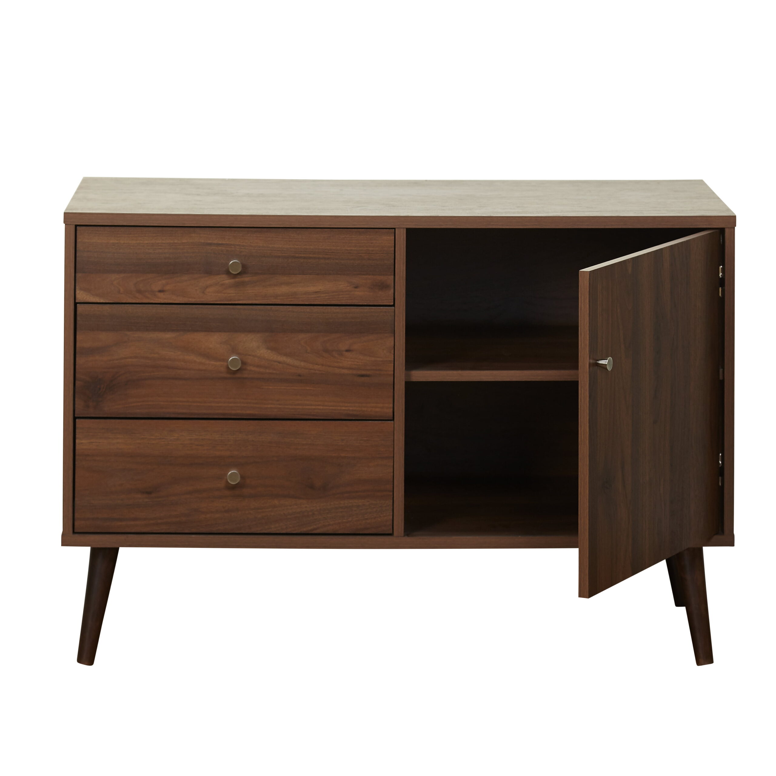 TMS Carroll 40 Wide Mid Century Modern Dining Room Sideboard Buffet. Walnut Finish
