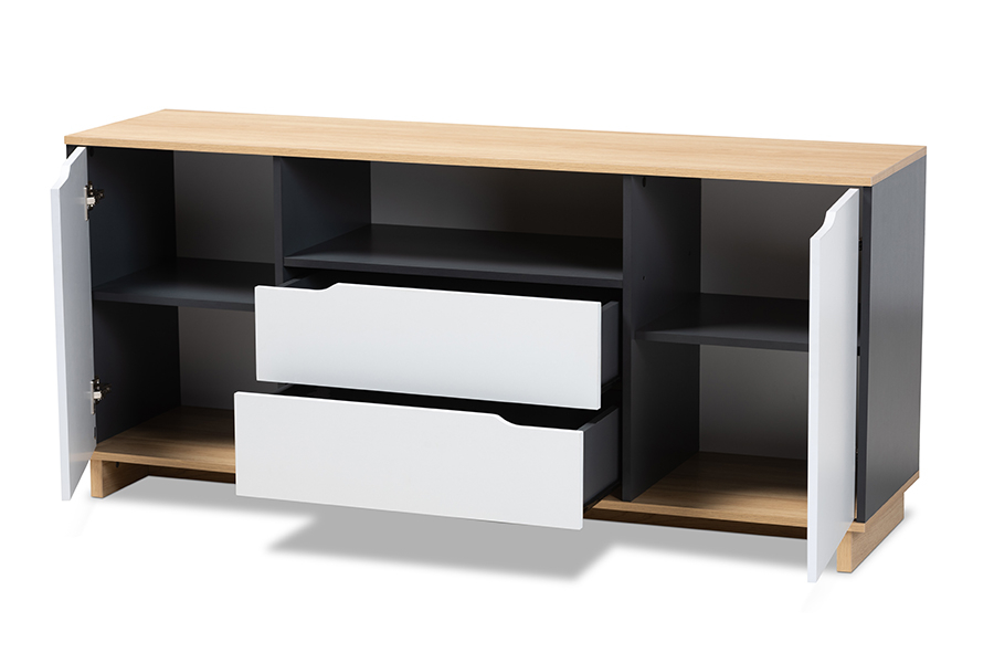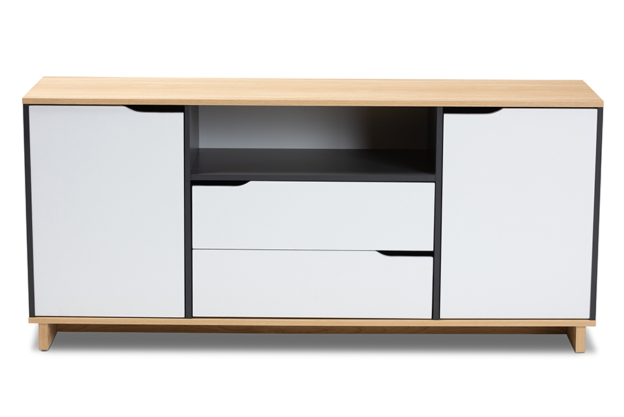 Baxton Studio Reed Mid-Century Modern Multicolor 2-Door Wood Dining Room Sideboard (White. Oak. Grey)