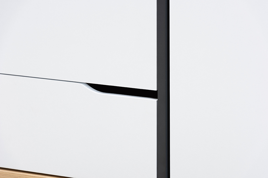 Leena Mid-Century Modern Two-Tone White and Walnut Brown Finished Wood 3-Drawer Sideboard Buffet