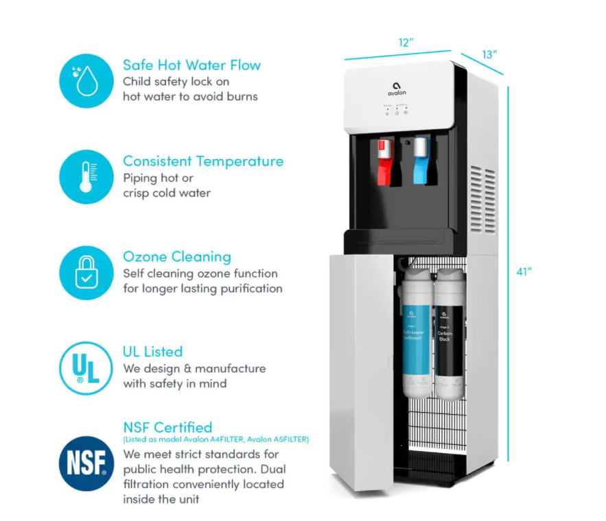 Avalon Self-Cleaning Touchless Bottle-Less Water Cooler Dispenser with Hot/Cold Water. Child Lock. NSF/UL/ENERGY STAR. White