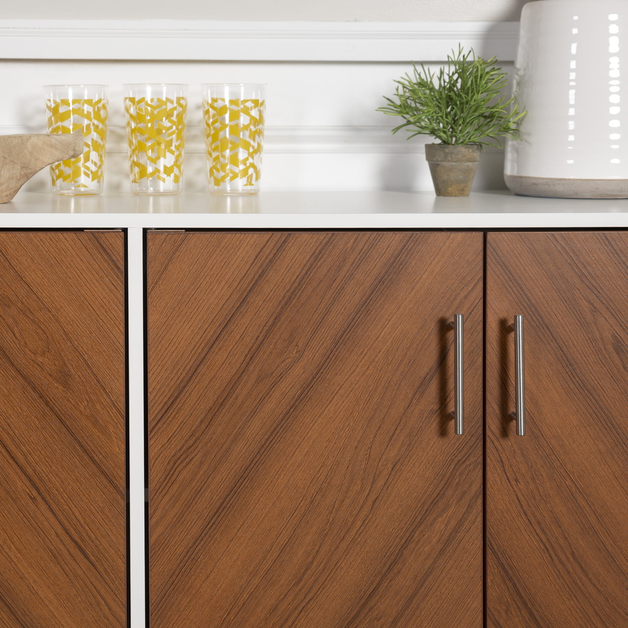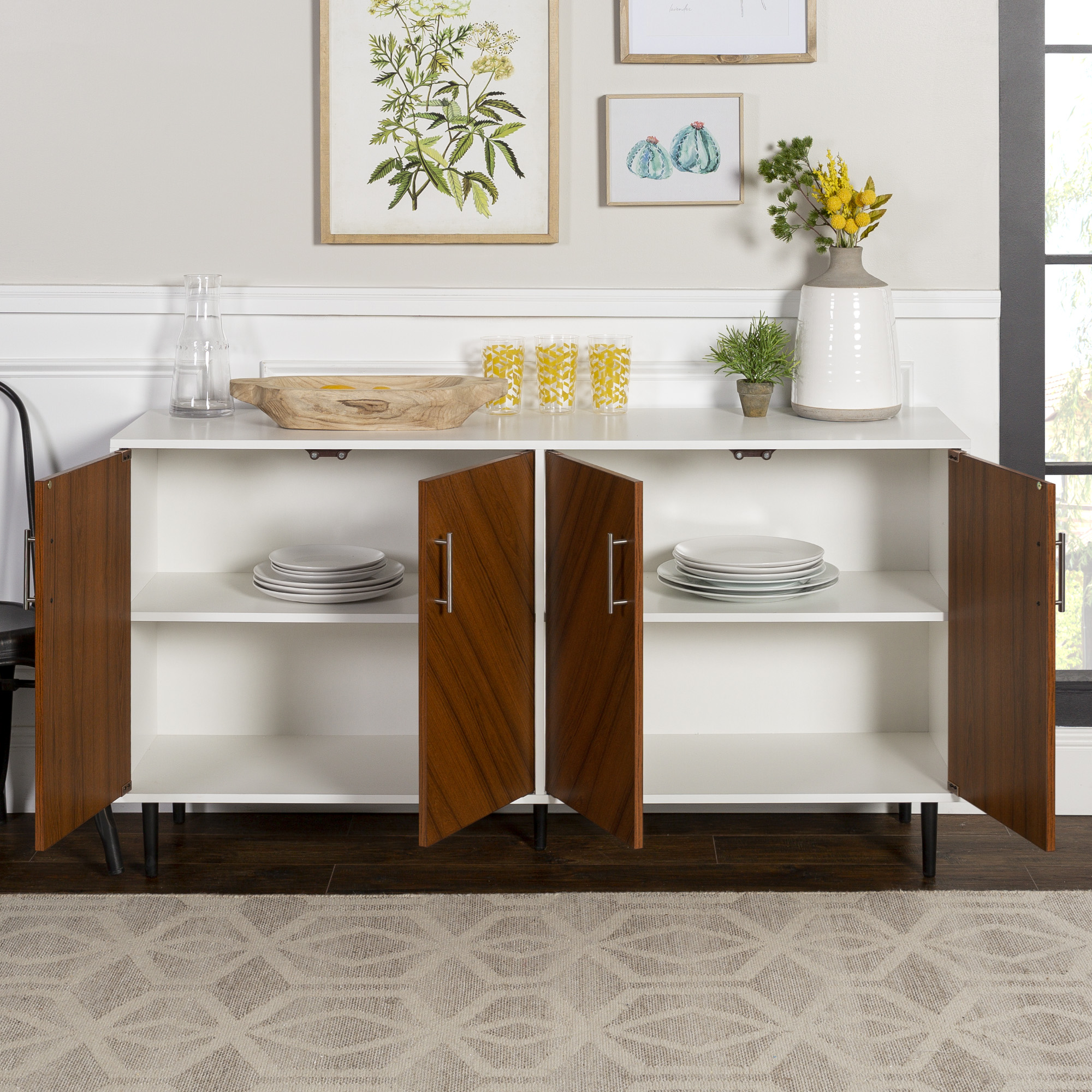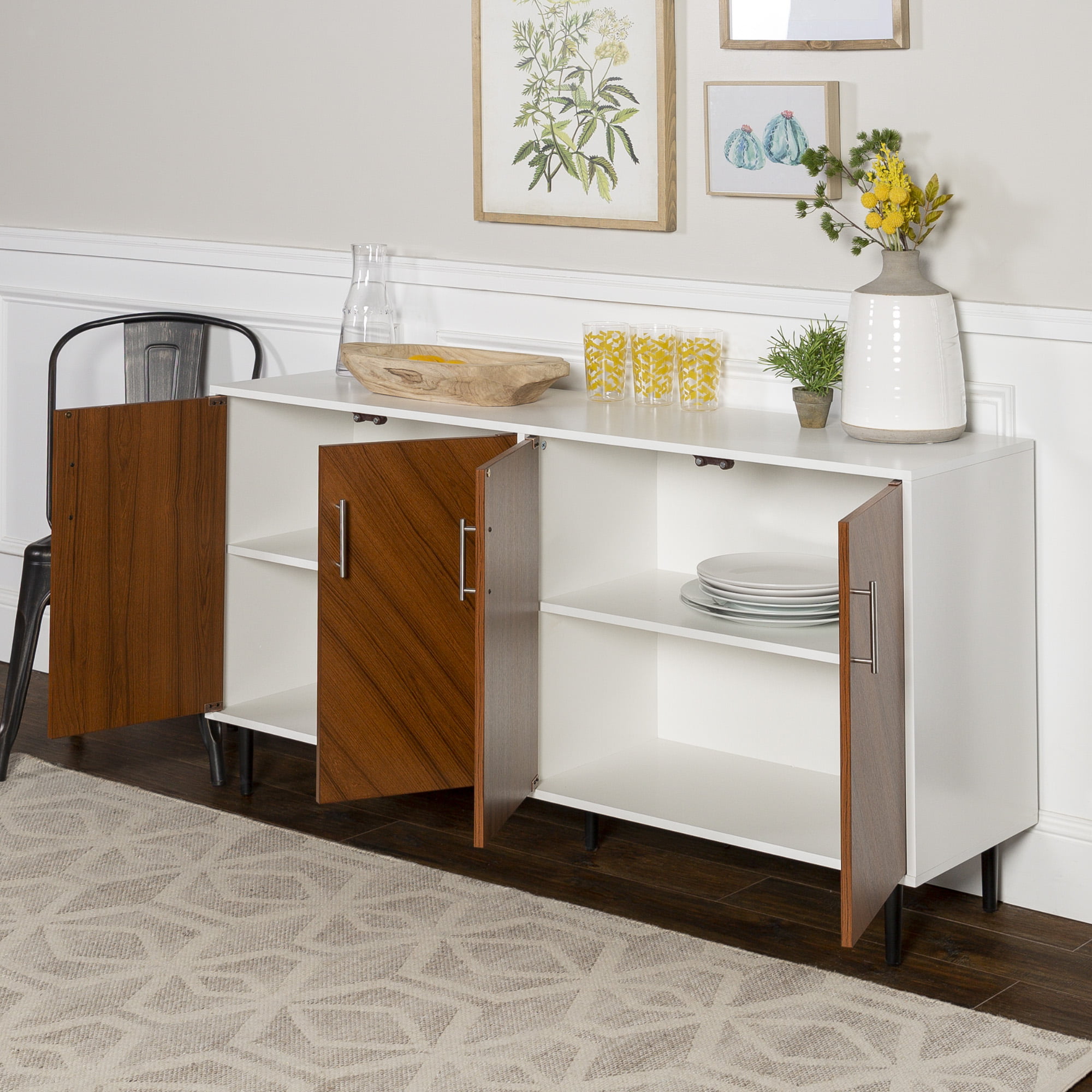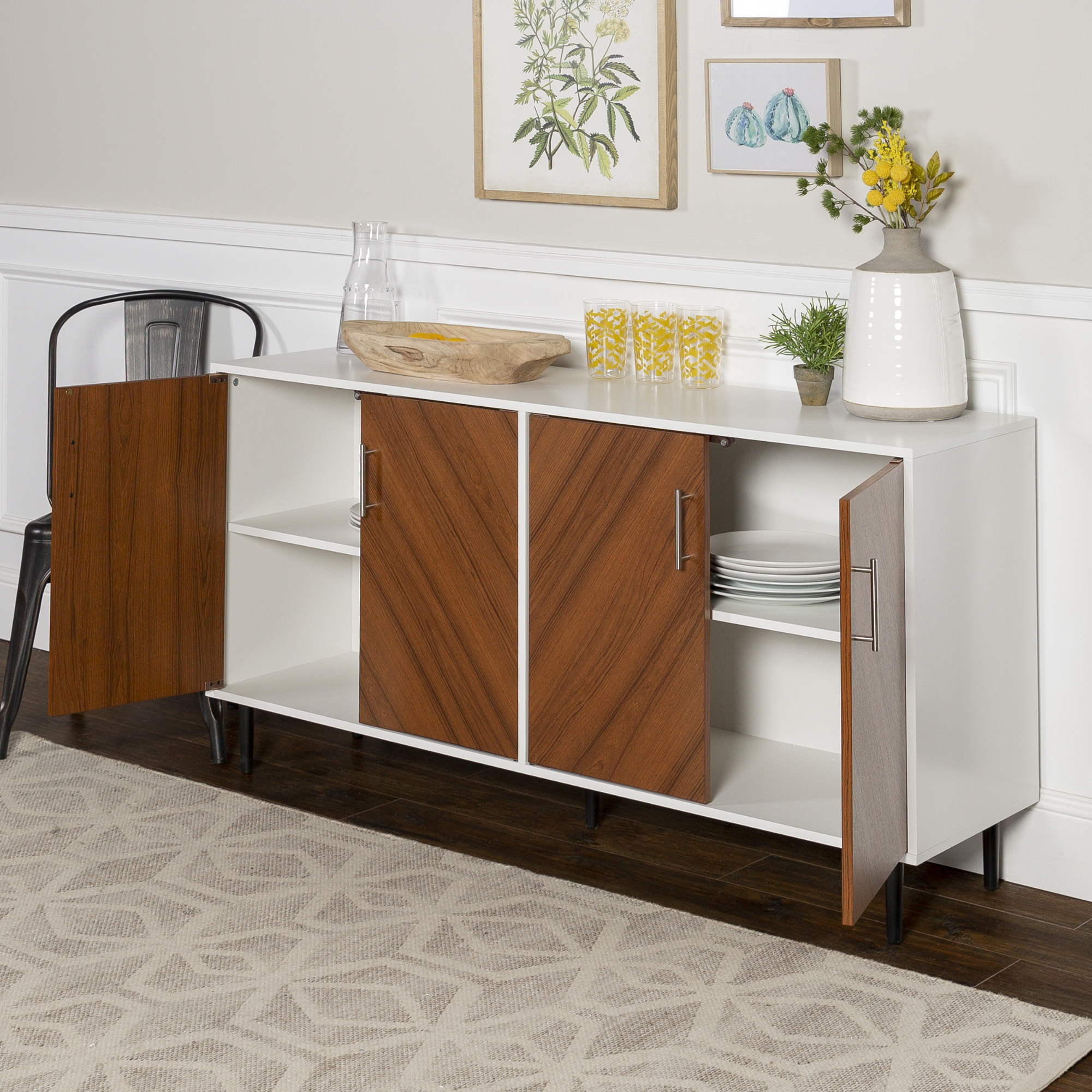 Desert Fields Margot Mid-Century Book Match Dual Cabinet Buffet. White/Teak