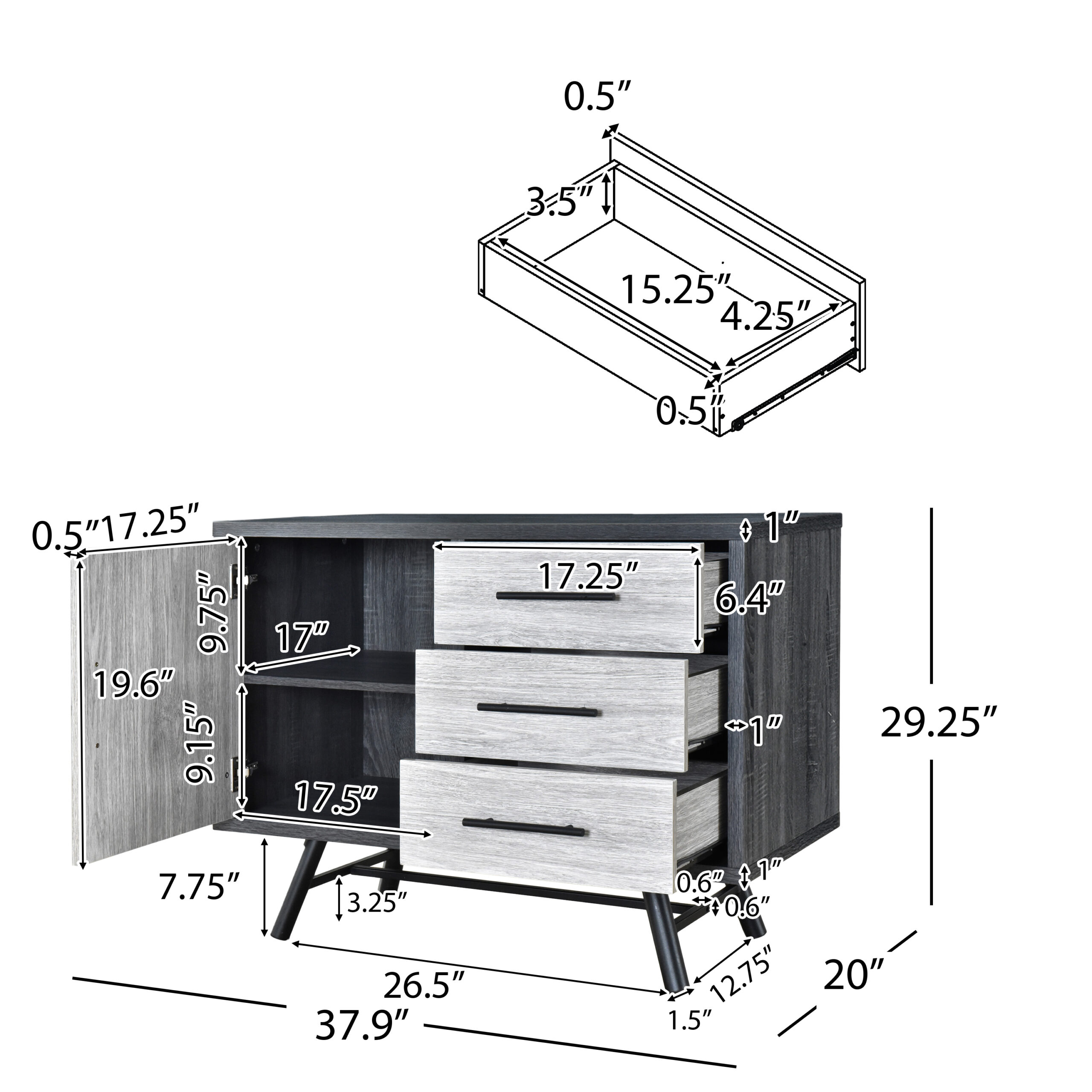 GDF Studio Bokchito Modern Industrial Sideboard. Sonoma Oak. Gray Oak. and Black