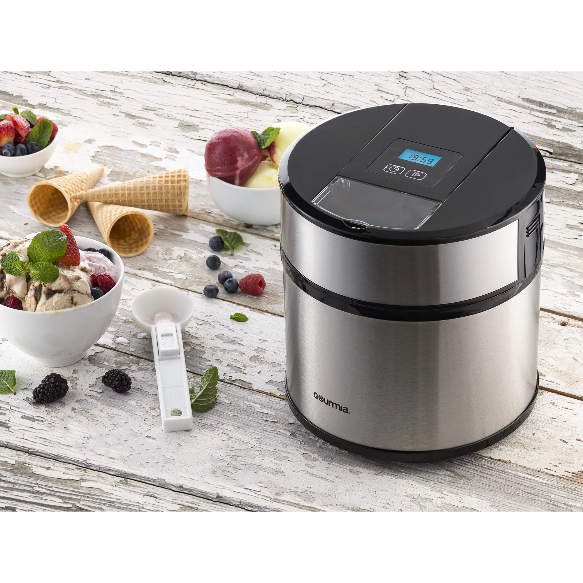 Gourmia 3 Pint Ice Cream Maker with Digital Timer. Stainless Steel
