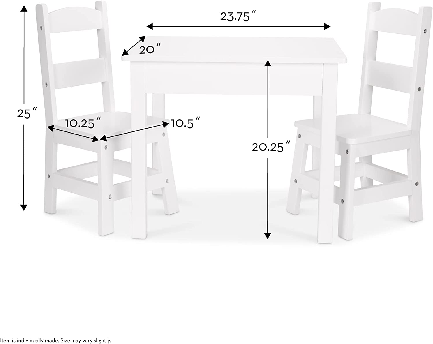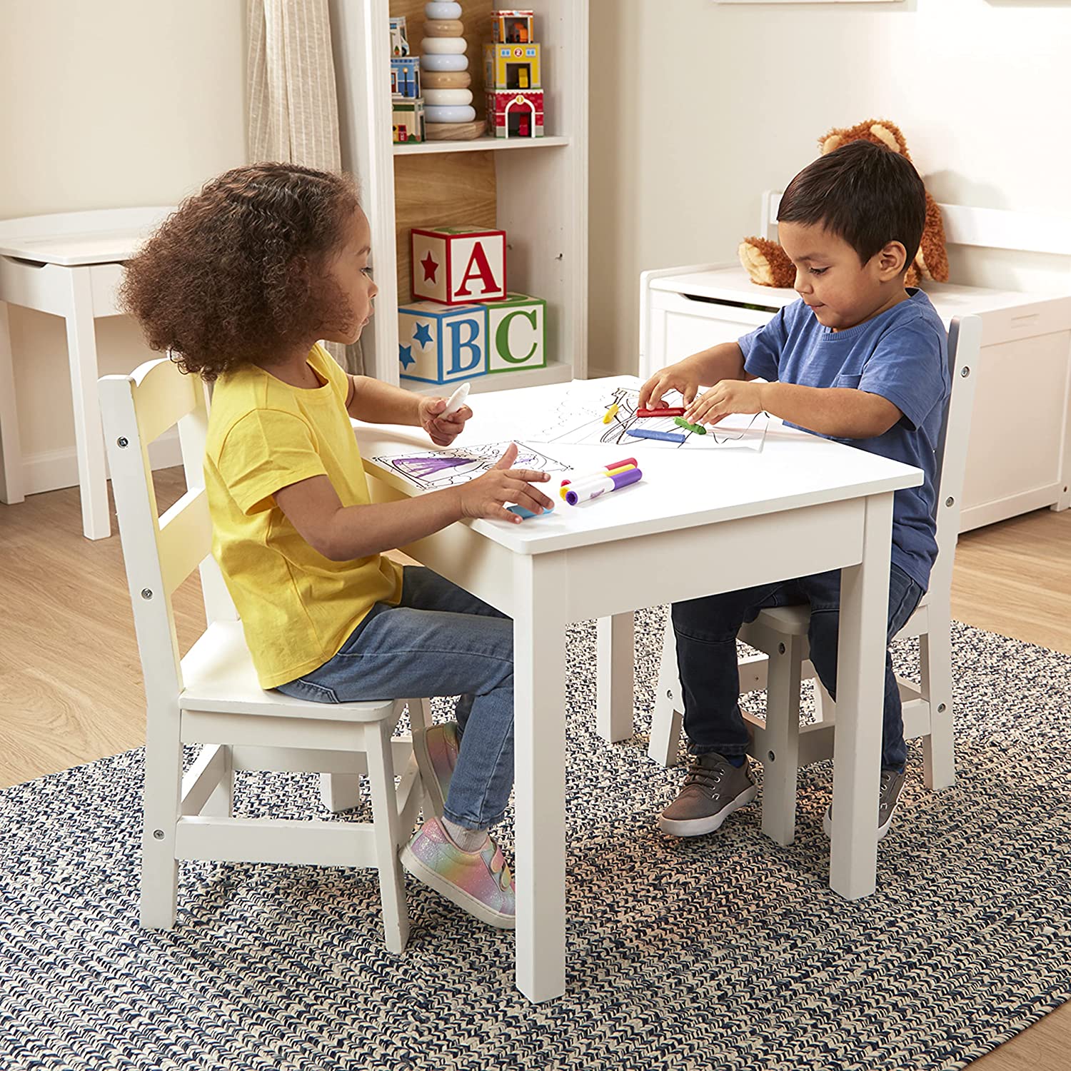 Melissa & Doug Solid Wood Table and 2 Chairs Set - Light Finish Furniture for Playroom