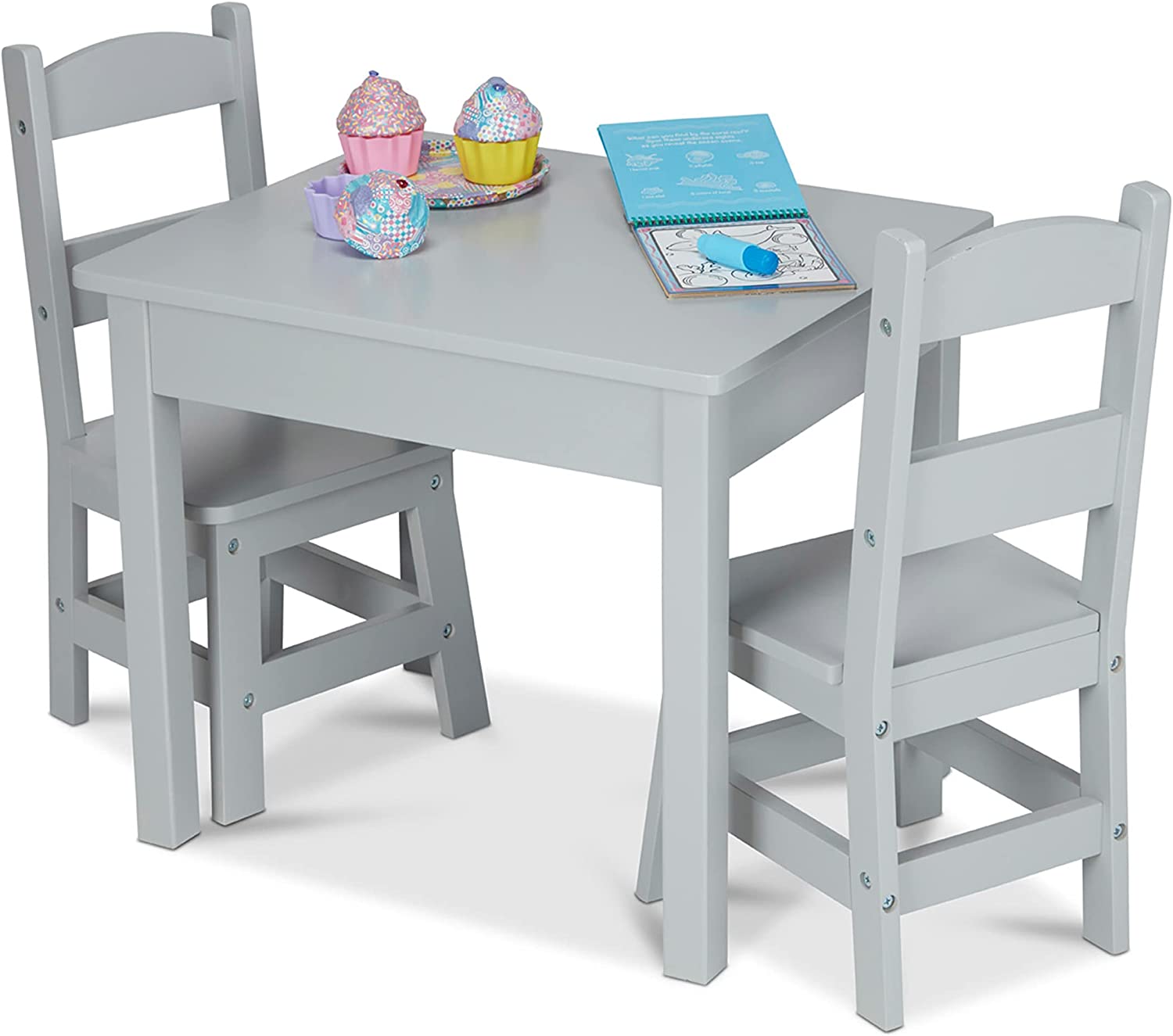 Melissa & Doug Table & Chairs-Gray Furniture - Wooden Activity Play Table And Chairs Set For Kids