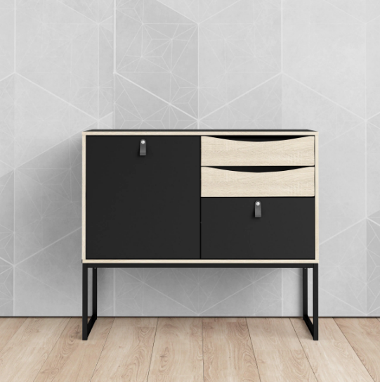 Tvilum Stubbe Black Matte/Oak Structure One Door Sideboard with 3-Drawers