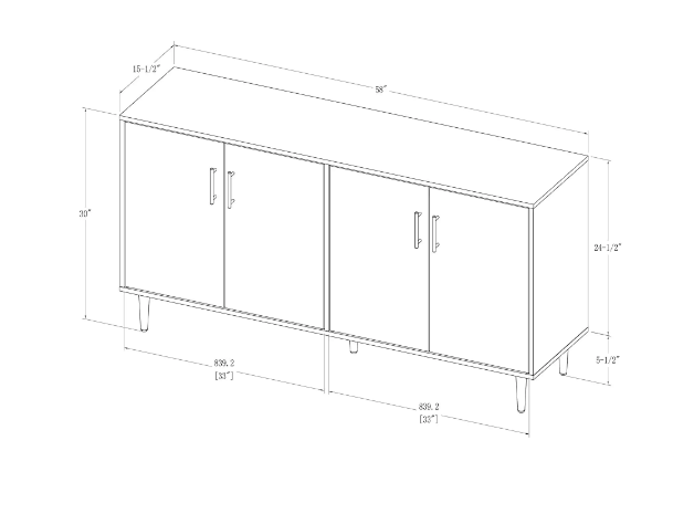 Walker Edison Furniture Company Hampton 58 in. Solid White and Teak Bookmatch Buffet Stand