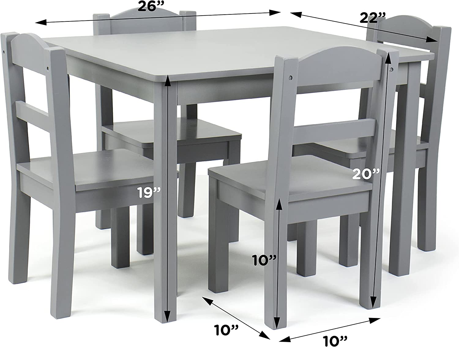 Humble Crew Kids Wood Table and 4 Chair Set. Grey