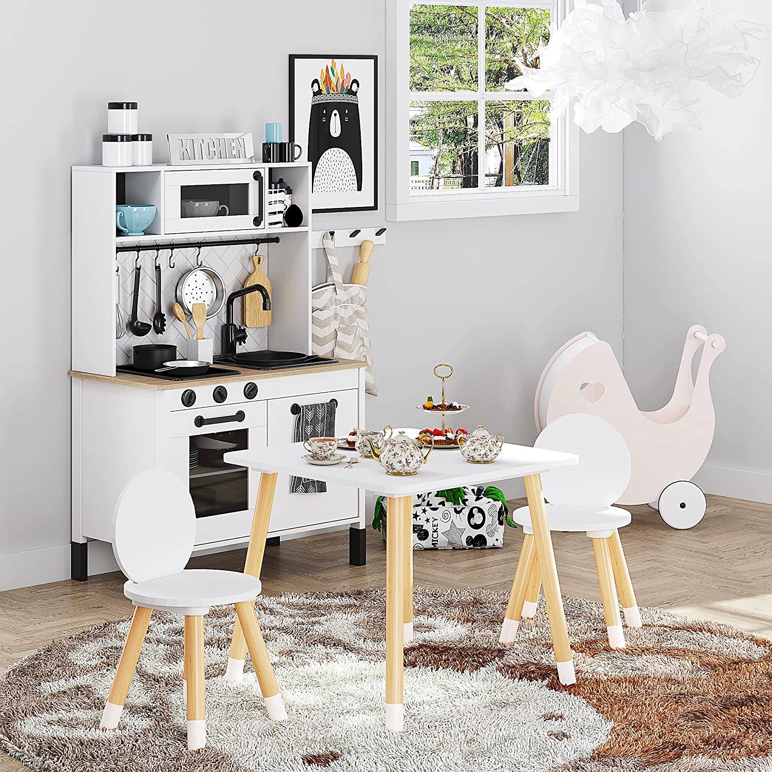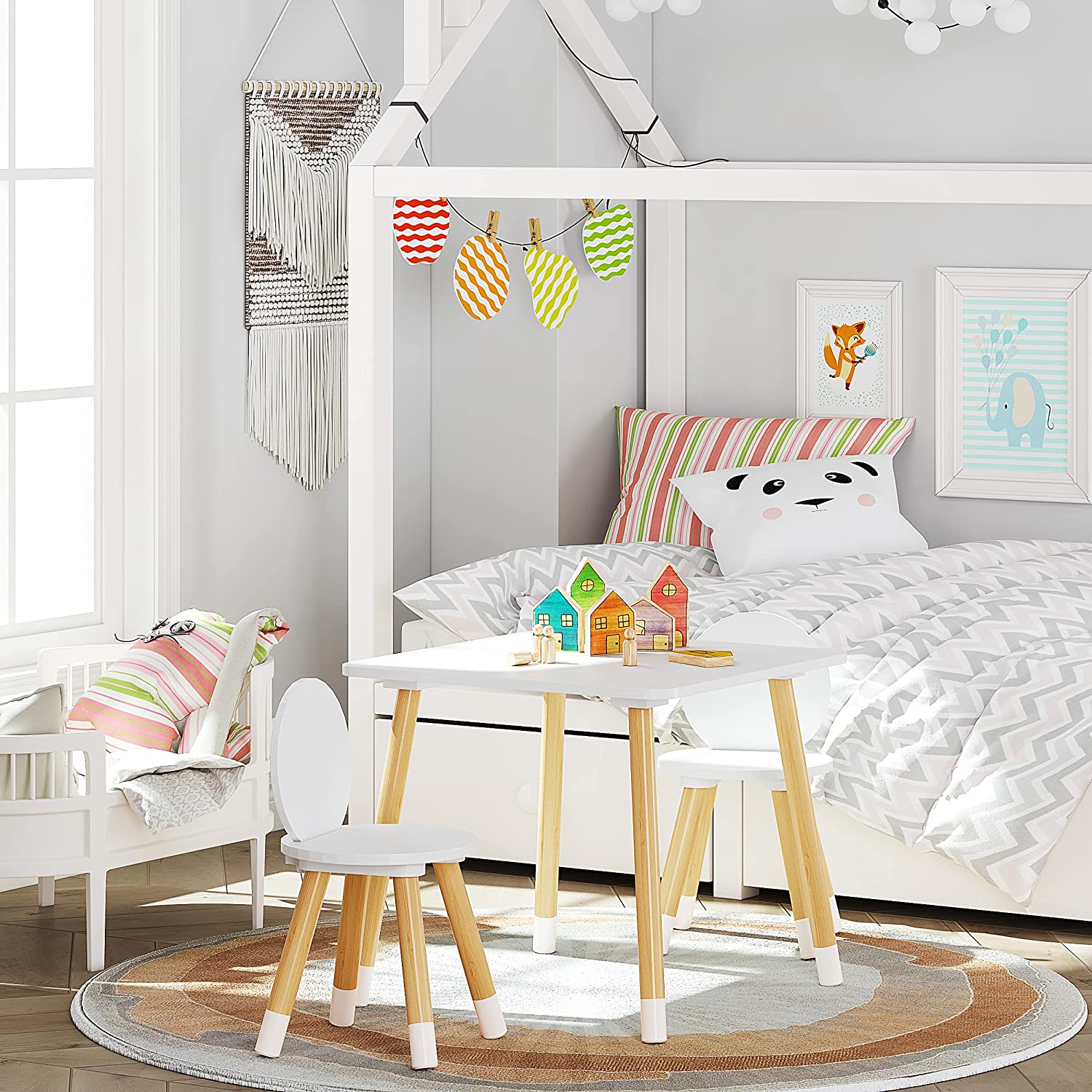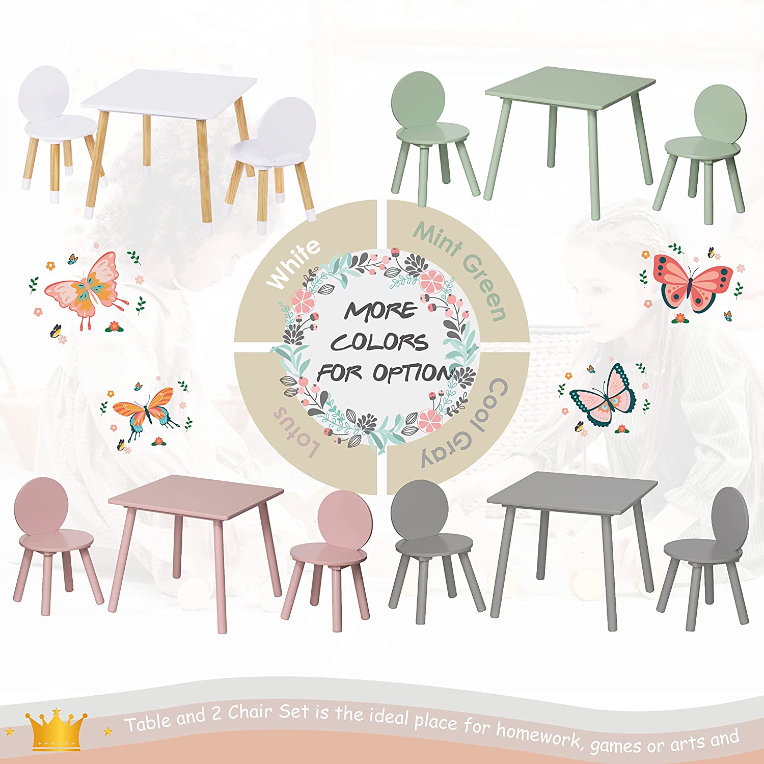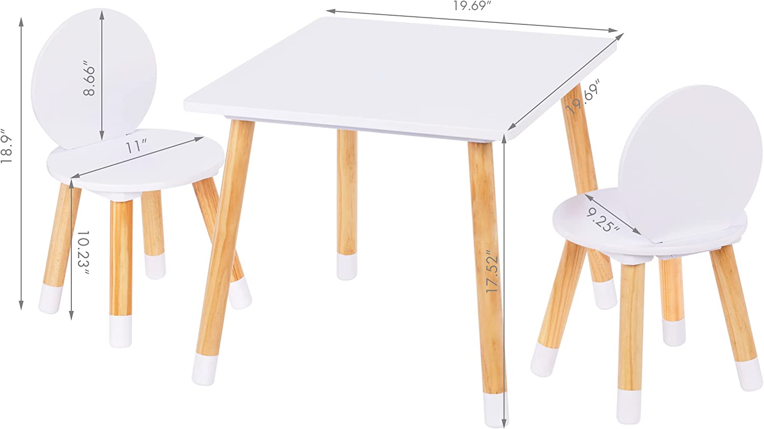 UTEX Kids Table with 2 Chairs Set for Toddlers. Boys. Girls. 3 Piece Kiddy Table and Chairs Set. White