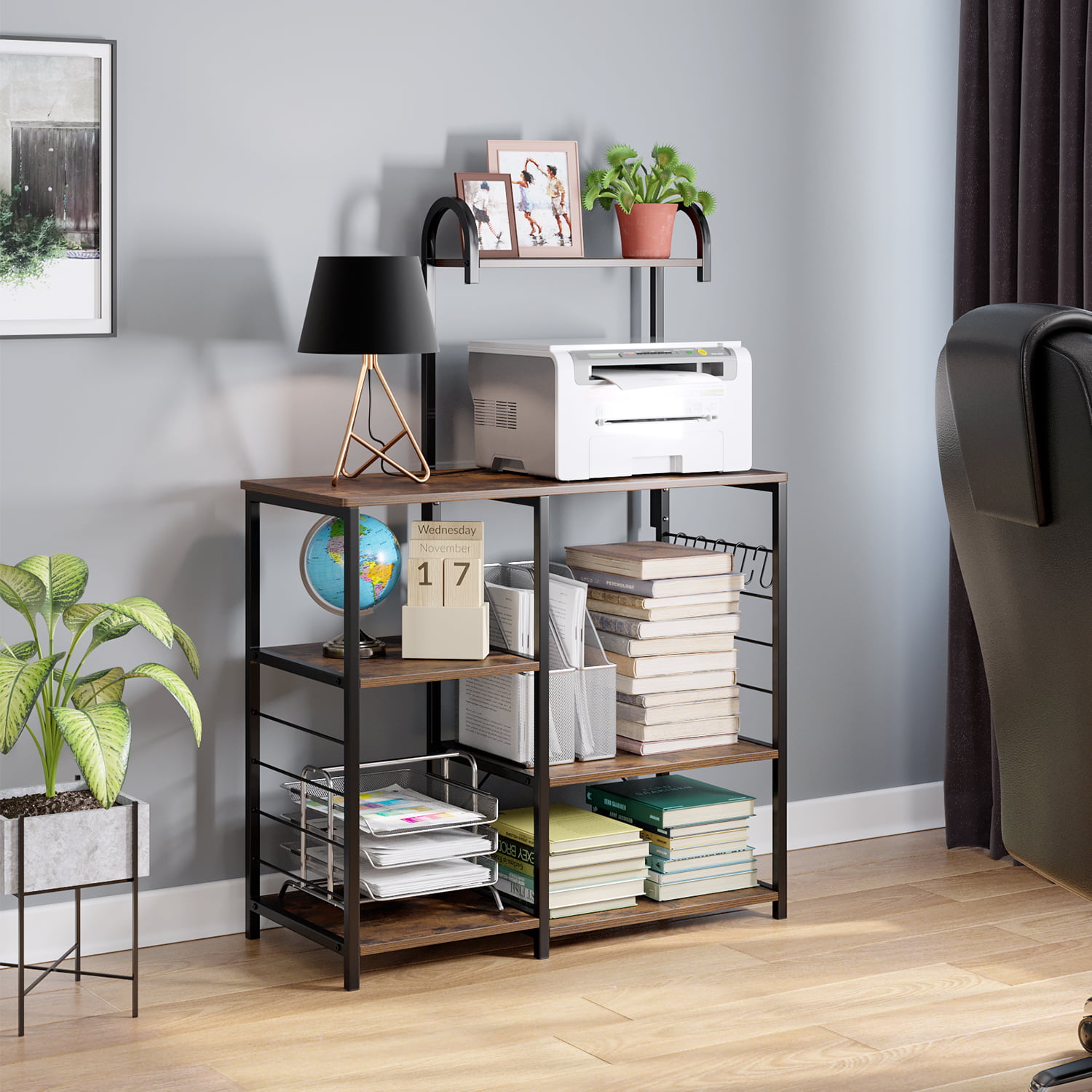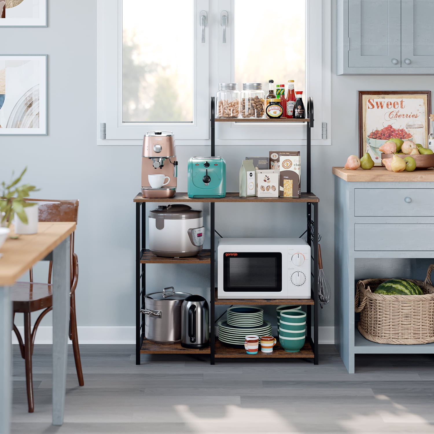 Ktaxon Kitchen Baker-s Rack with Metal Basket. Industrial Microwave Oven Stand with Wood Storage Shelves. Freestanding Kitchen Utility Cart Storage Shelf Organizer. White Oak