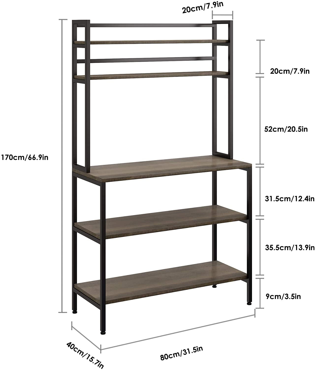 Homfa Bakers Rack. 5 Tier Kitchen Microwave Oven Stand with Hutch. Wood Storage Shelf for Dining Room. Dark Brown
