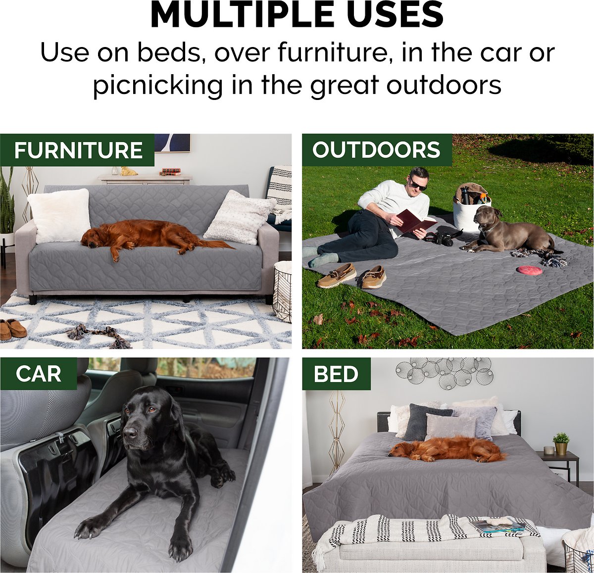 FurHaven Waterproof Cat & Dog Blanket Protector. Quilted Gray - 68″ x 82″ - Full