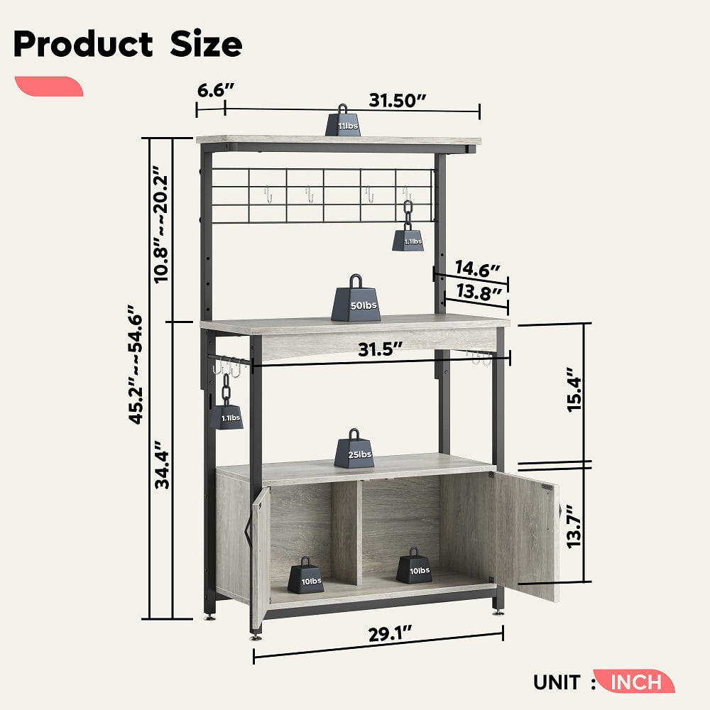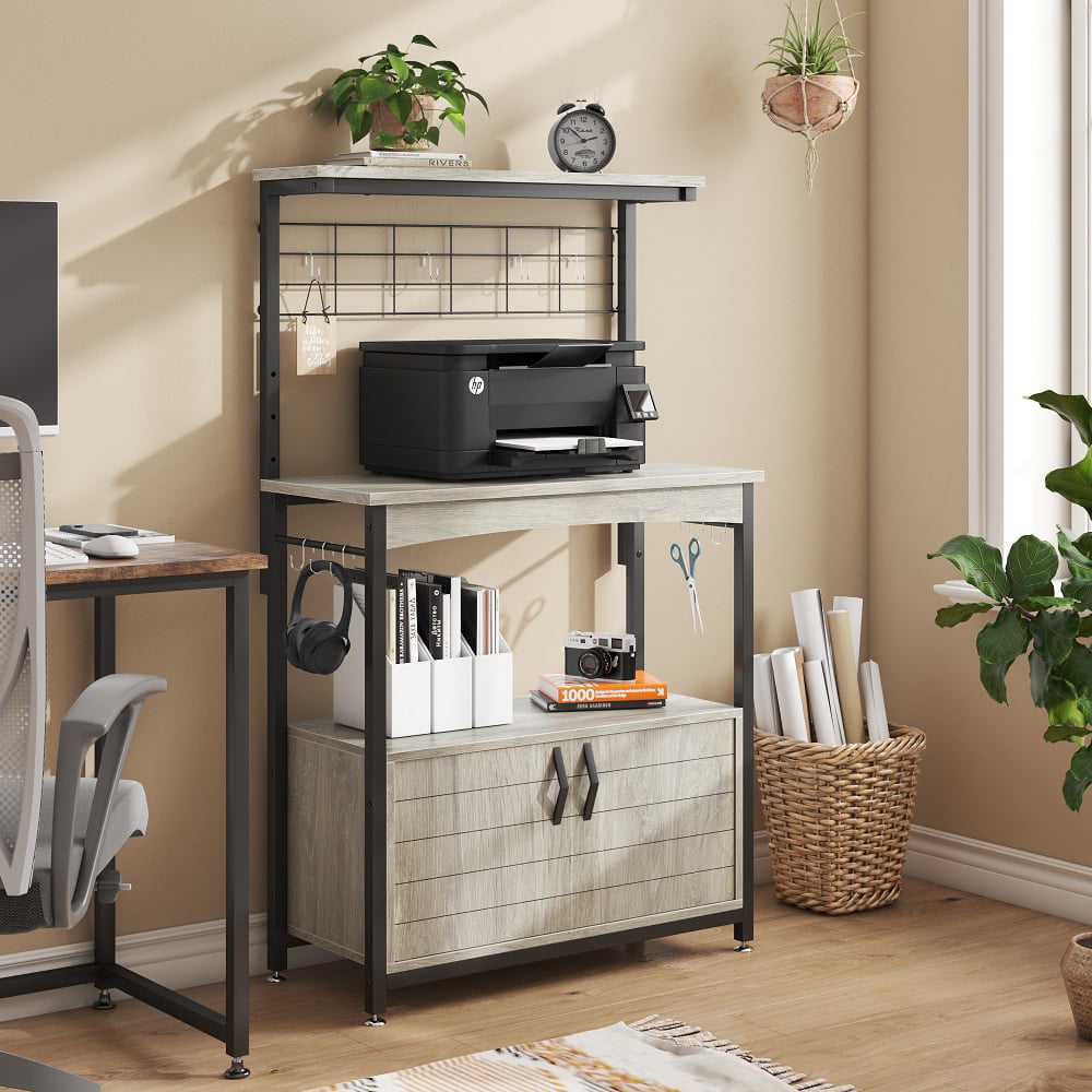 Bestier 3-Tier Kitchen Baker-s Rack Microwave Oven Stand with Storage Cabinet Grey