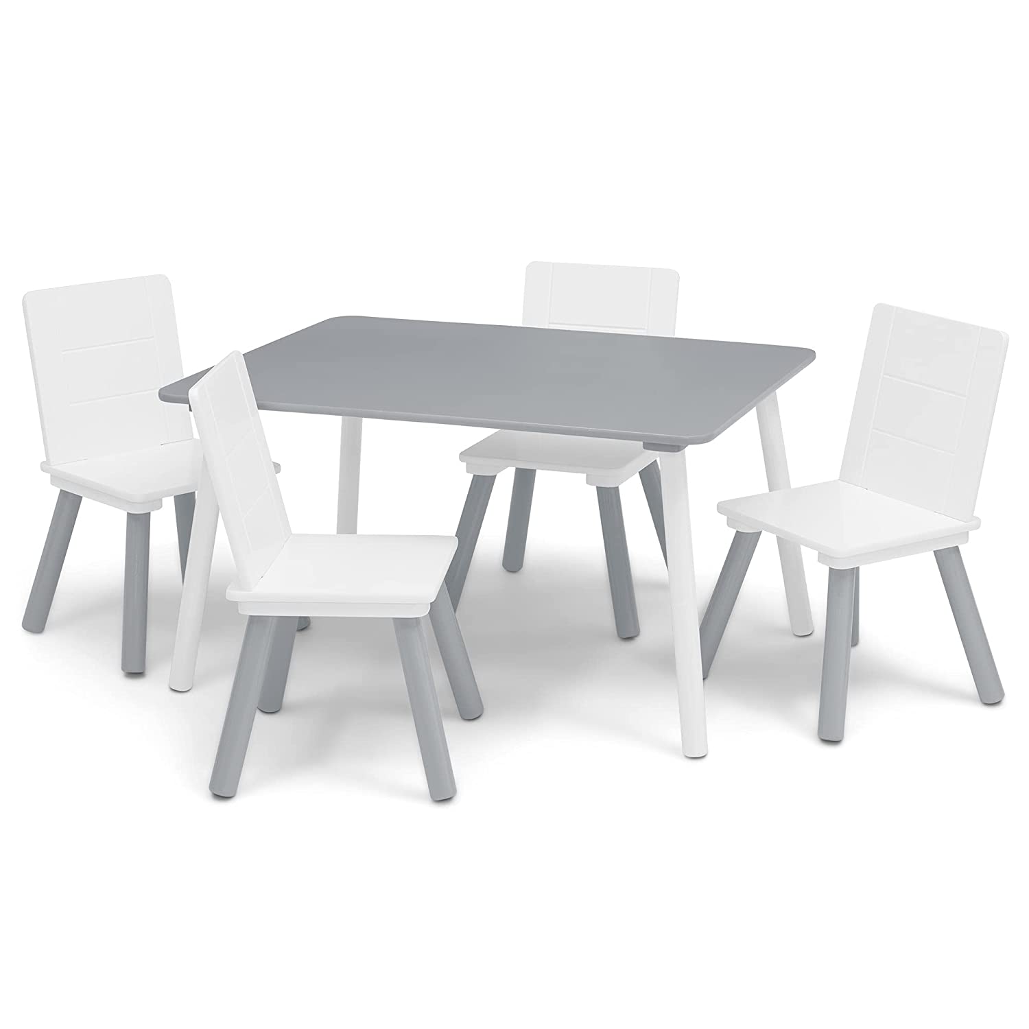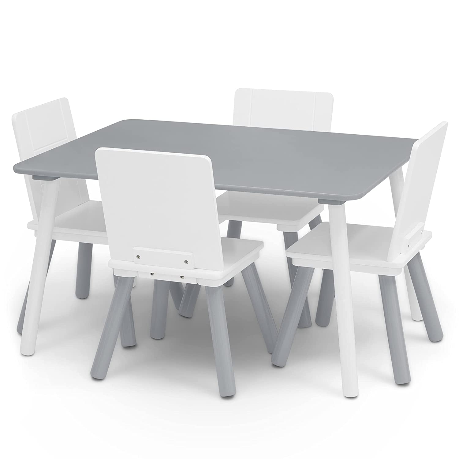 Delta Children Kids Table and Chair Set (4 Chairs Included) - Ideal for Arts & Crafts. Snack Time. Homeschooling. Homework & More. Grey/White