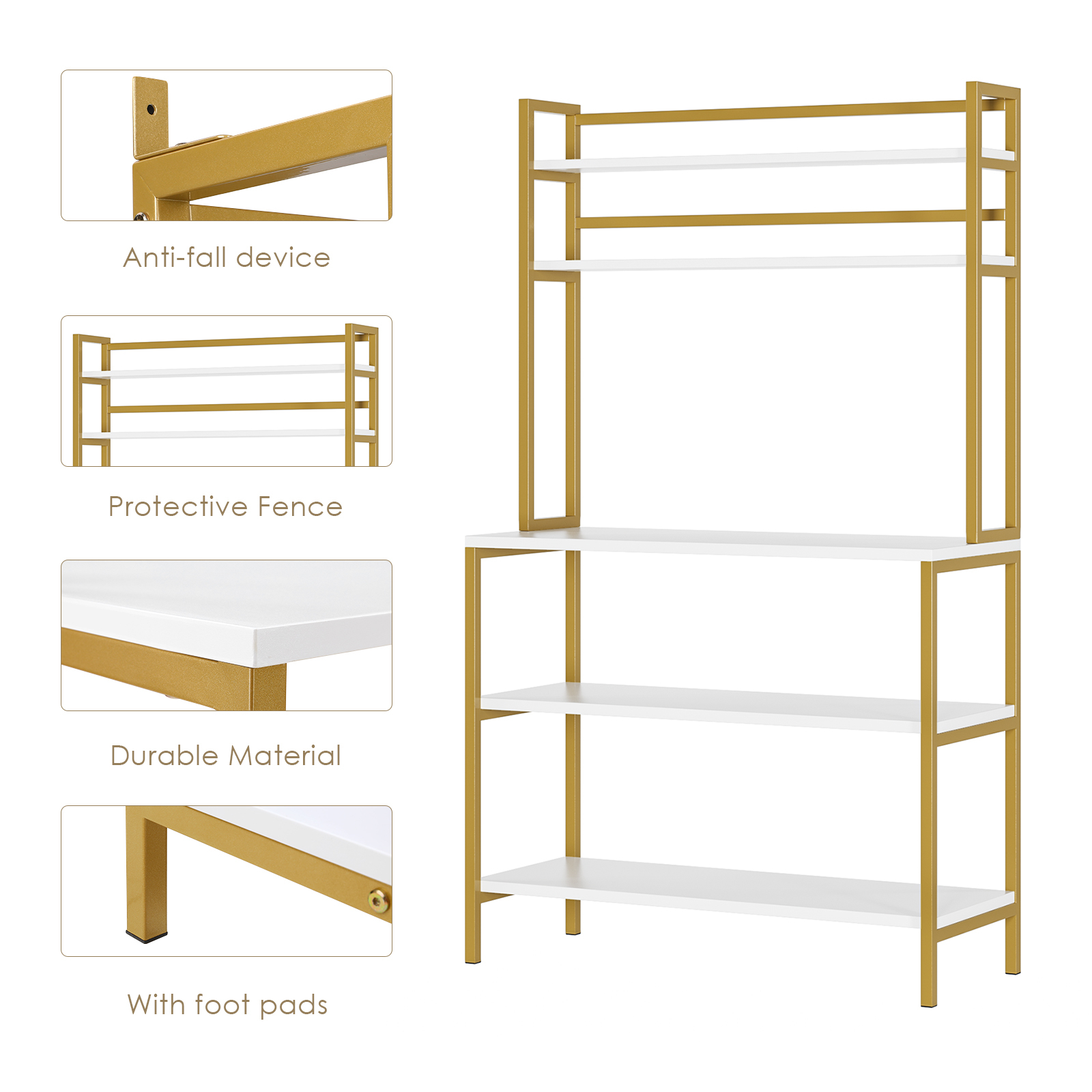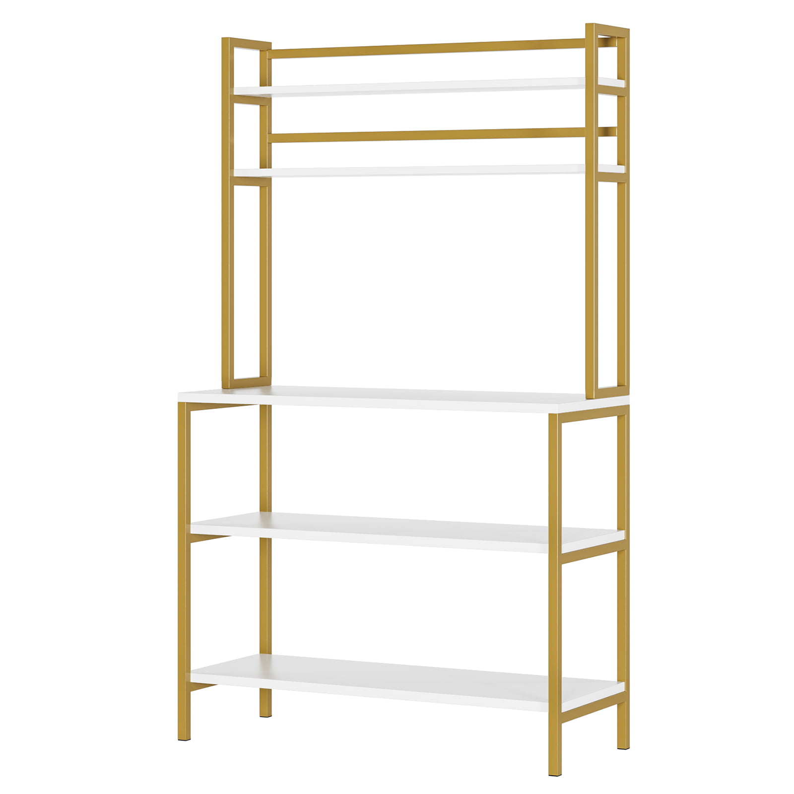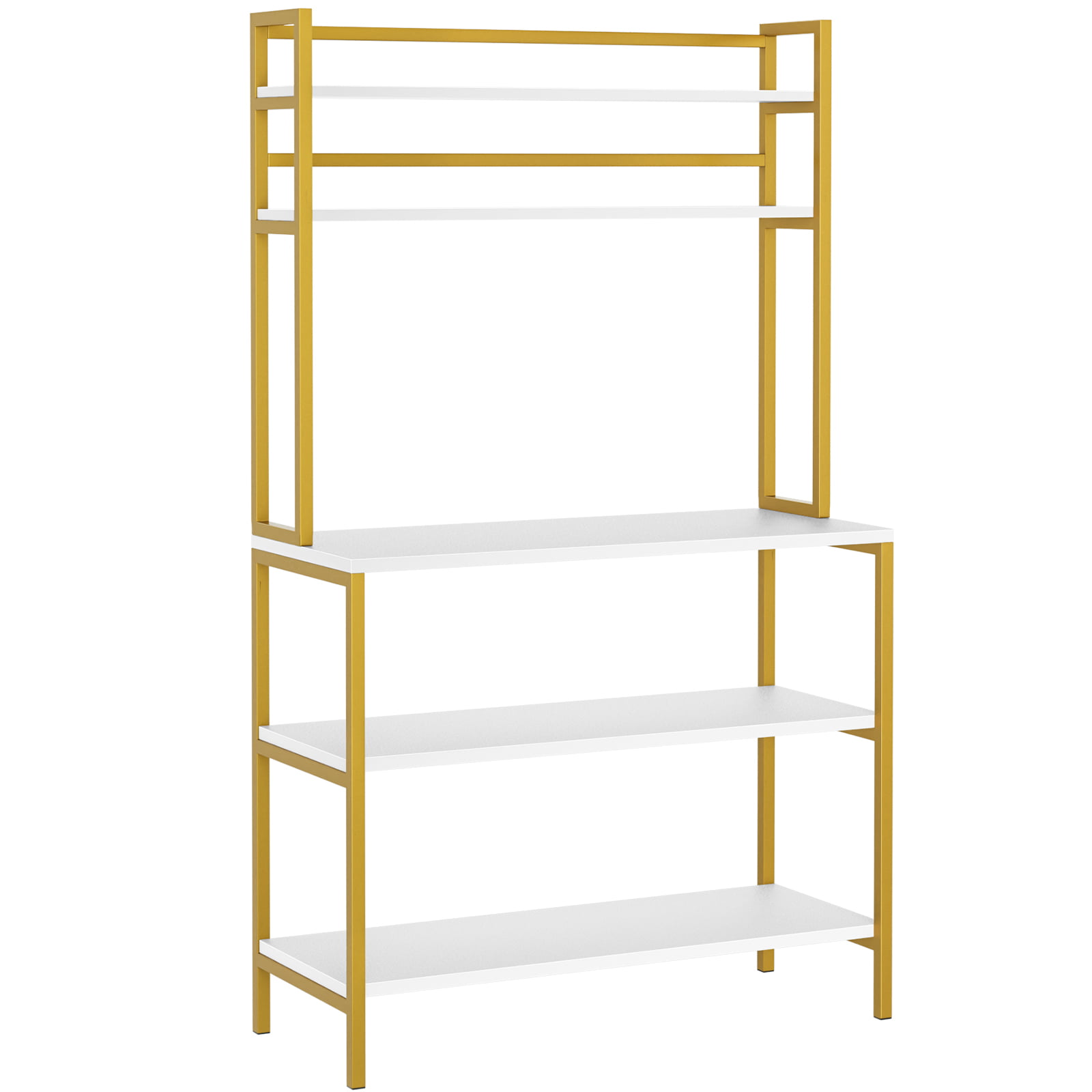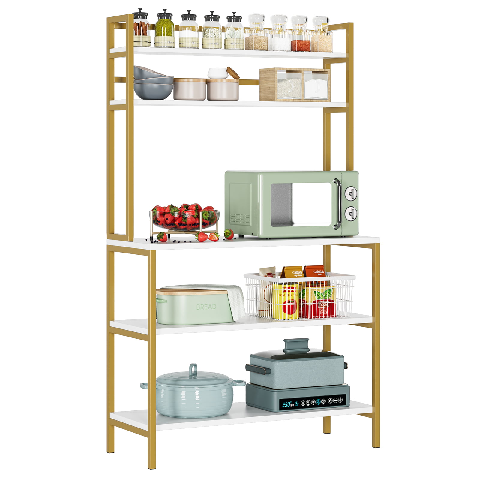 Homfa 5-Tier Kitchen Bakers Rack with Hutch. Gold Framed Microwave Oven Stand Storage Shelf. White Finish