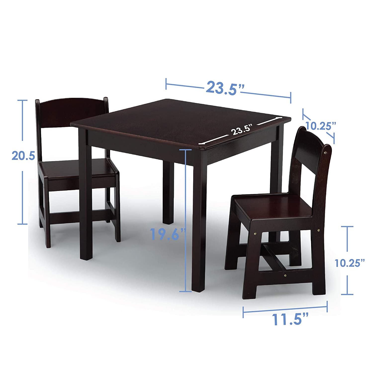 Delta Children MySize Kids Wood Table and Chair Set (2 Chairs Included) - Ideal for Arts & Crafts. Snack Time. Homework & More - Greenguard Gold Certified. Dark Chocolate. 3 Piece Set