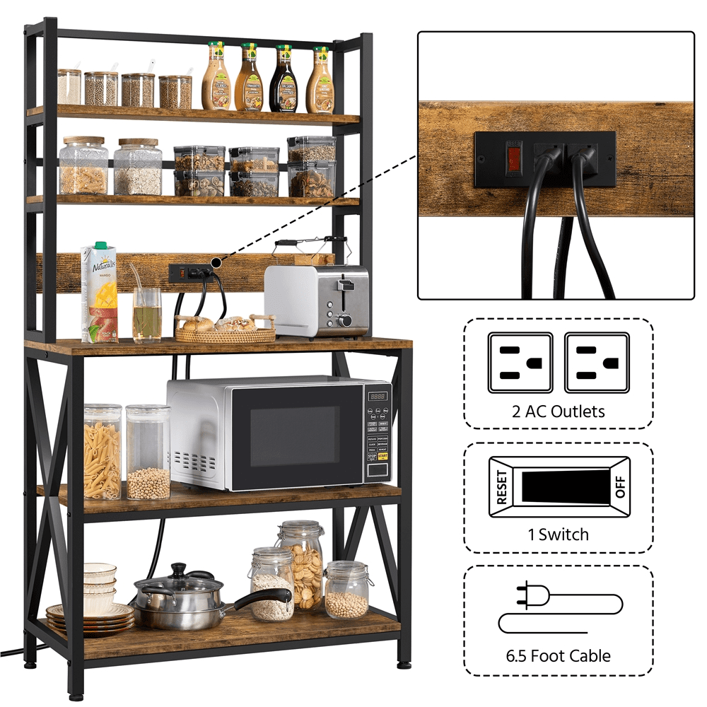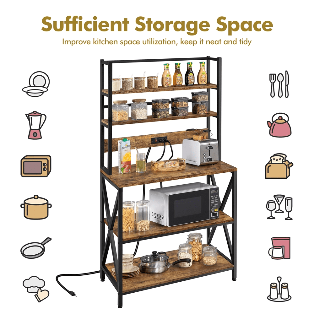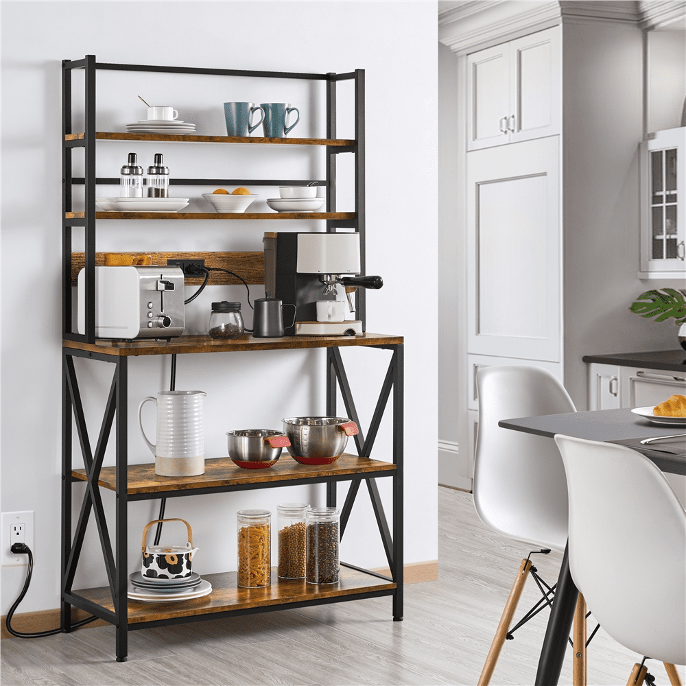 SmileMart 5-Tier Kitchen Baker's Racks with Power Outlets for Kitchens. Rustic Brown