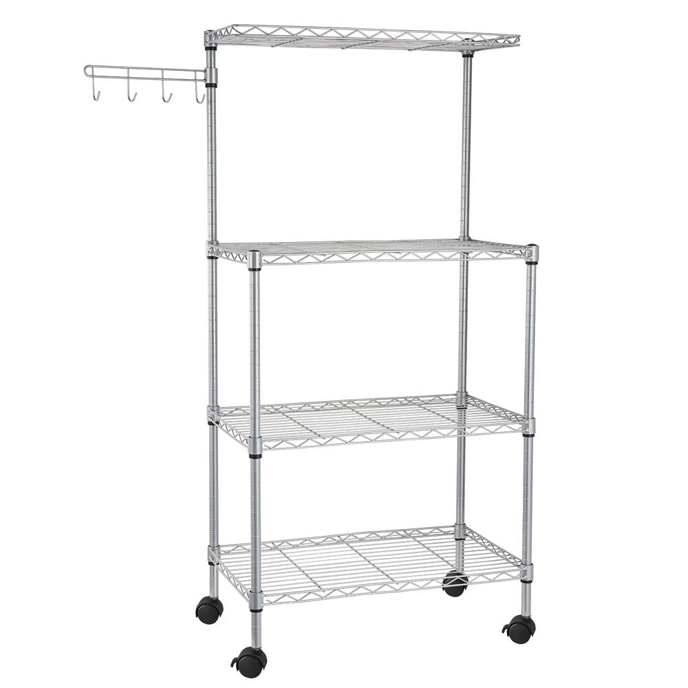 Zimtown 4-Tier Bakers Rack Kitchen Utility Cart Storage Rack Microwave Oven Stand with Hanging Hooks Chrome for Dining Room. Home. Silver