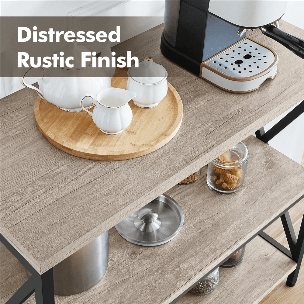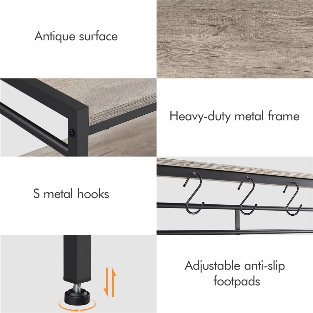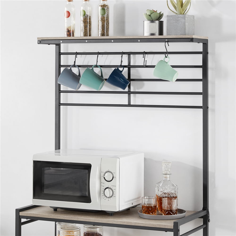 Easyfashion 4-Tier Kitchen Baker-s Rack with Hooks. Gray