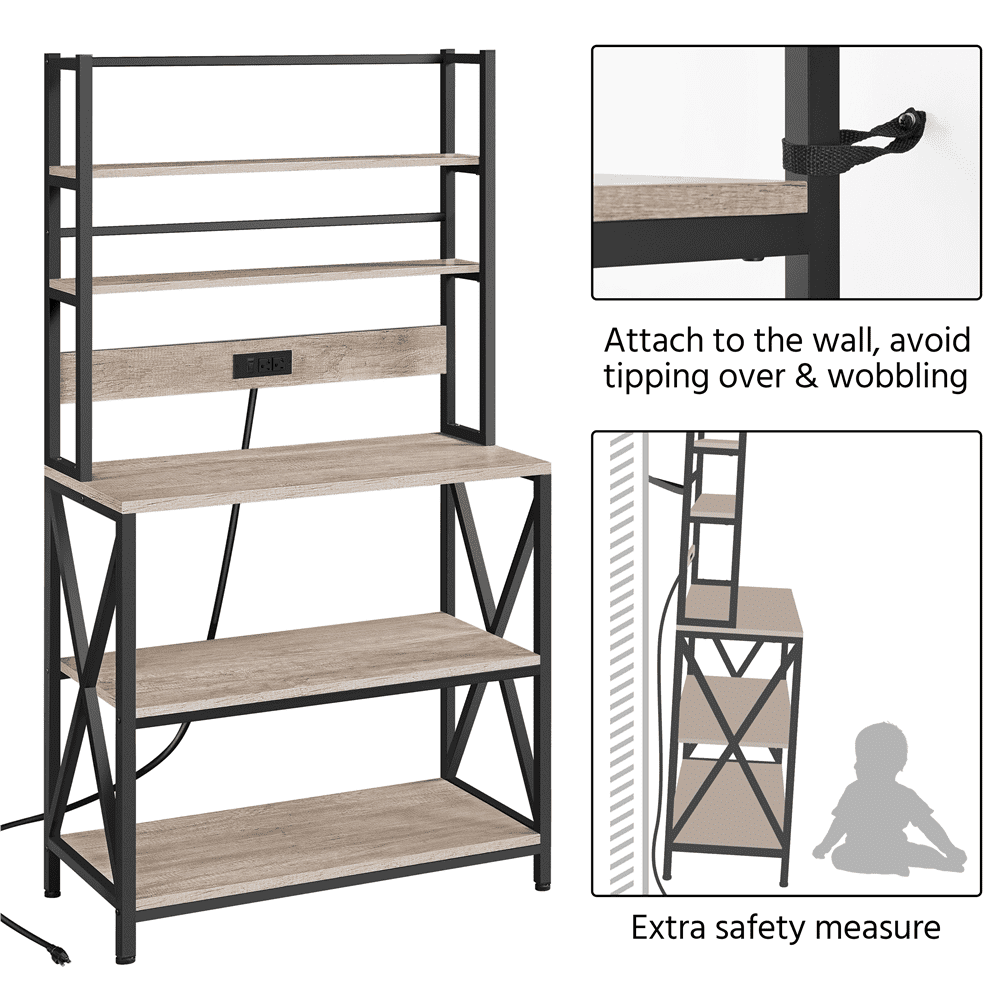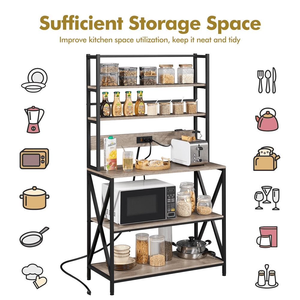 SmileMart 5-Tier Kitchen Baker's Racks with Power Outlets for Kitchens. Gray