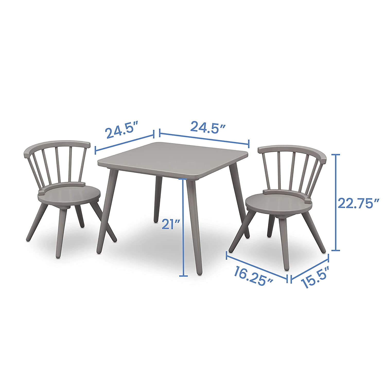Delta Children Windsor Kids Wood Table Chair Set (2 Chairs Included) - Ideal for Arts & Crafts. Snack Time. Homeschooling. Homework & More. Greenguard Gold Certified. Grey