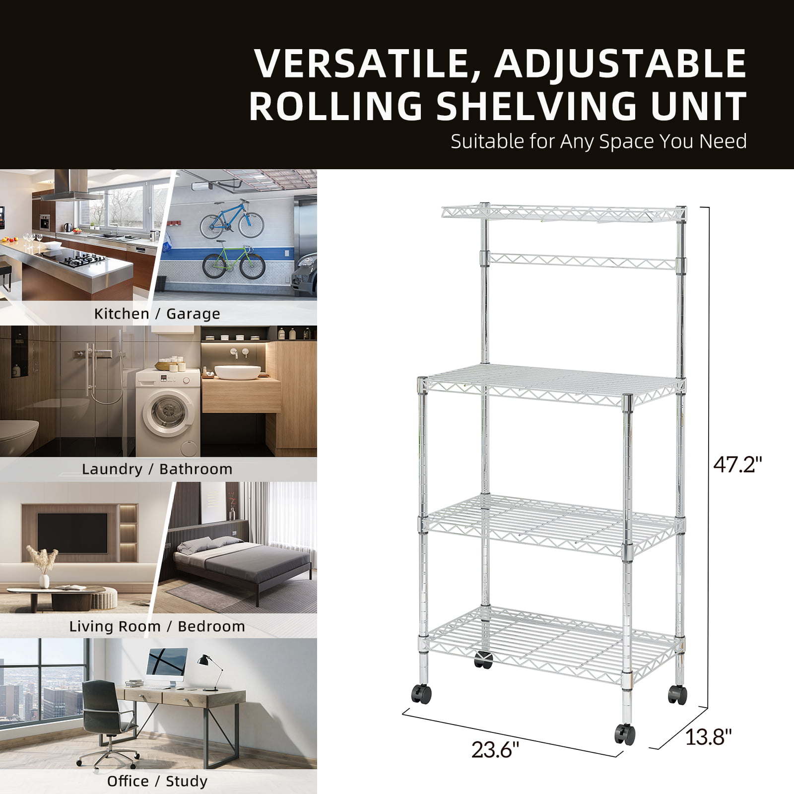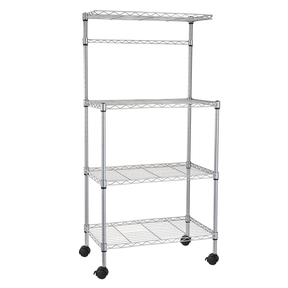 Zimtown 4 Tiers Kitchen Cart Island on Wheels Rolling Microwave Oven Stand Baker-s Rack with Storage Shelves. Silver Finish