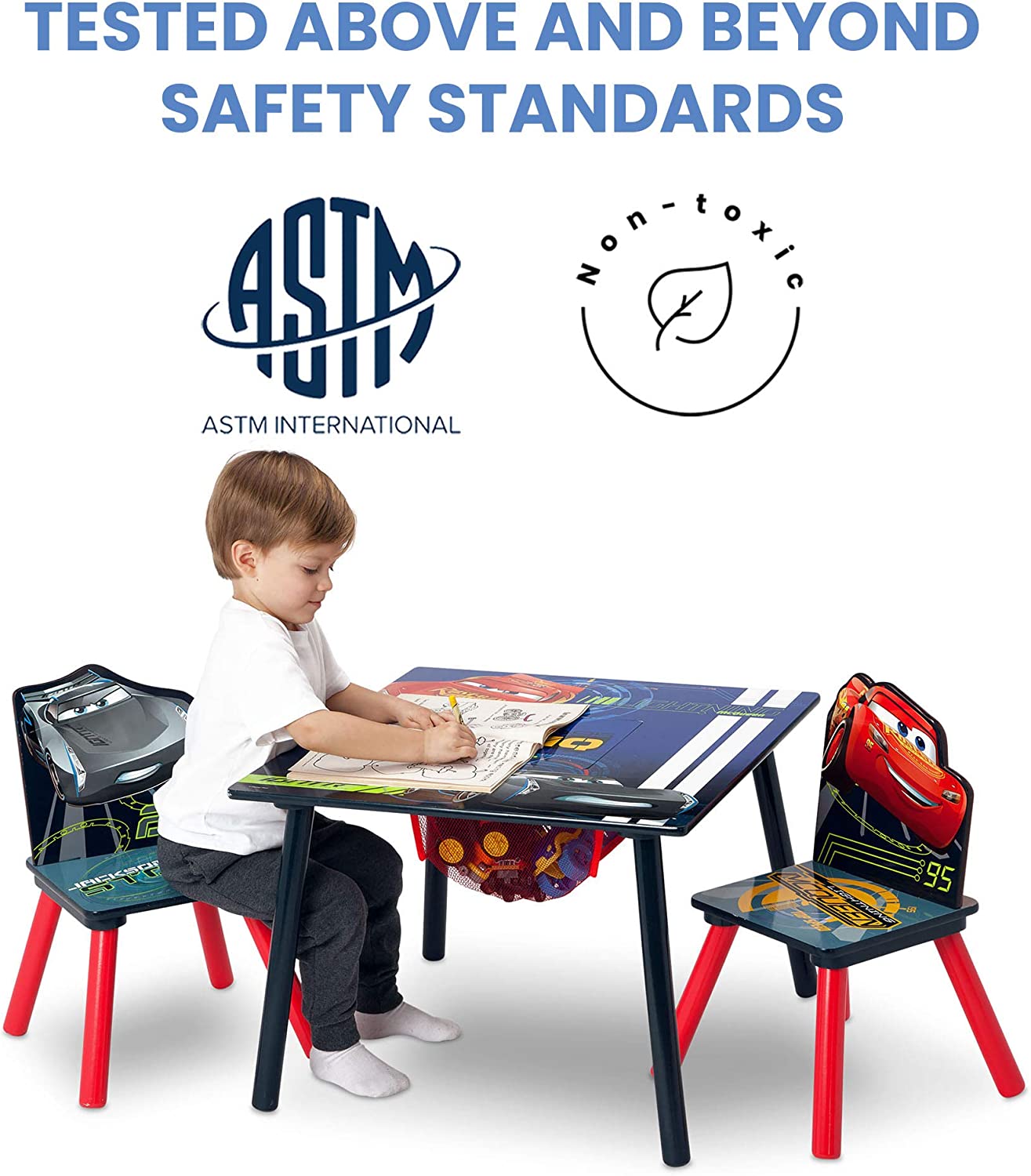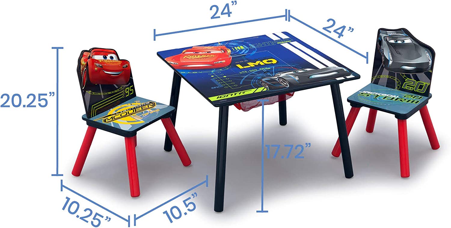 Delta Children Kids Table and Chair Set With Storage (2 Chairs Included) - Ideal for Arts & Crafts. Snack Time. Homework & More. Disney/Pixar Cars. 3 Piece Set
