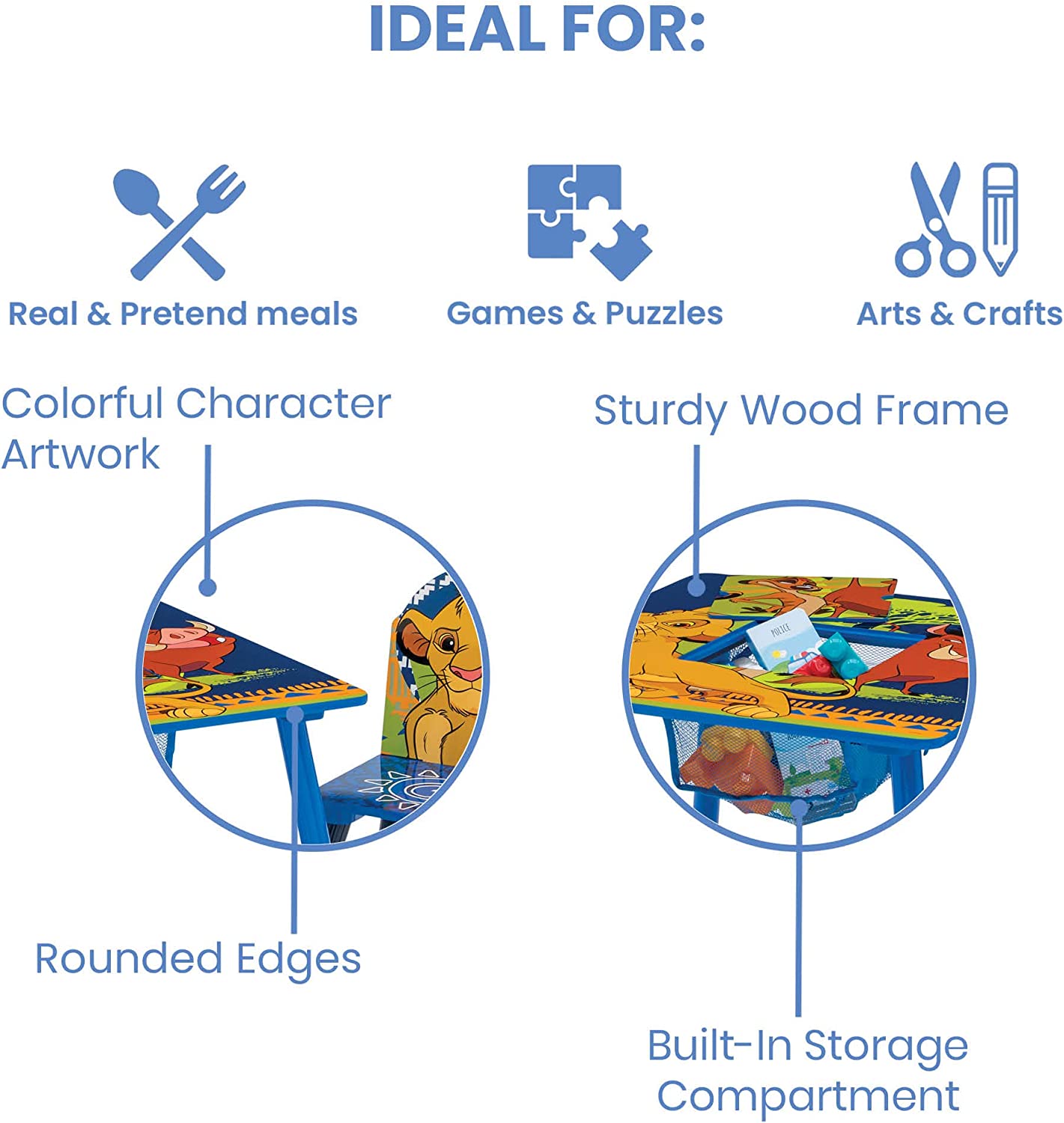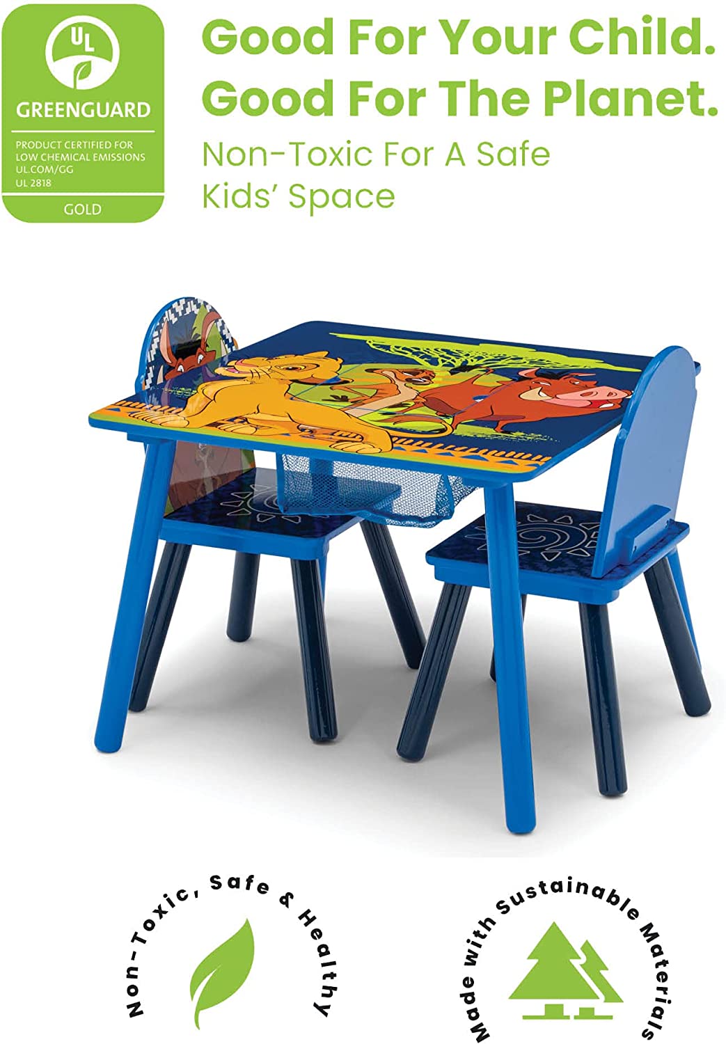 Delta Children Kids Table and Chair Set With Storage (2 Chairs Included) - Ideal for Arts & Crafts. Snack Time. Homeschooling. Homework & More - Greenguard Gold Certified. Disney The Lion King