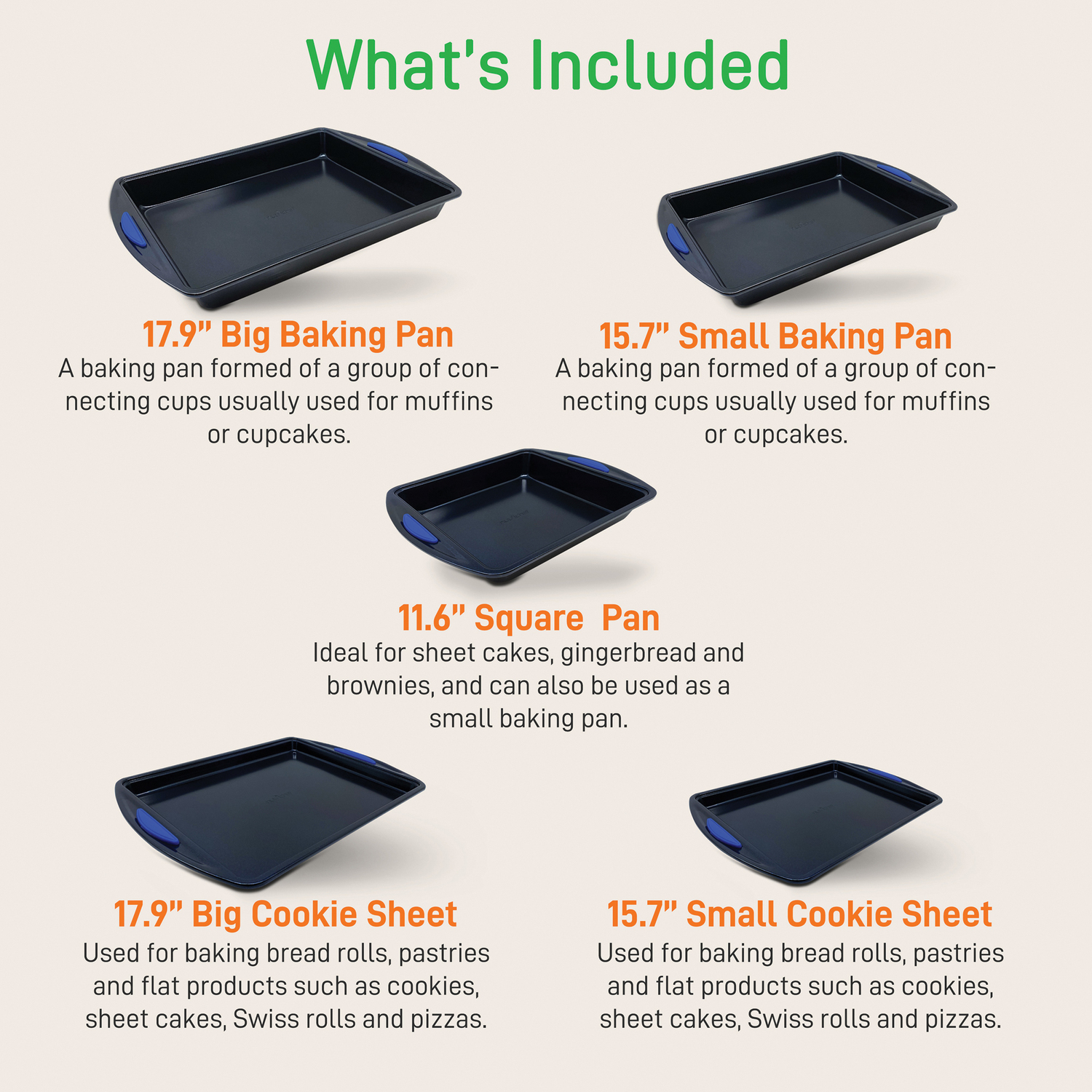 NutriChef 10-Piece Nonstick Carbon Steel Baking Pan Set with Silicone Handles