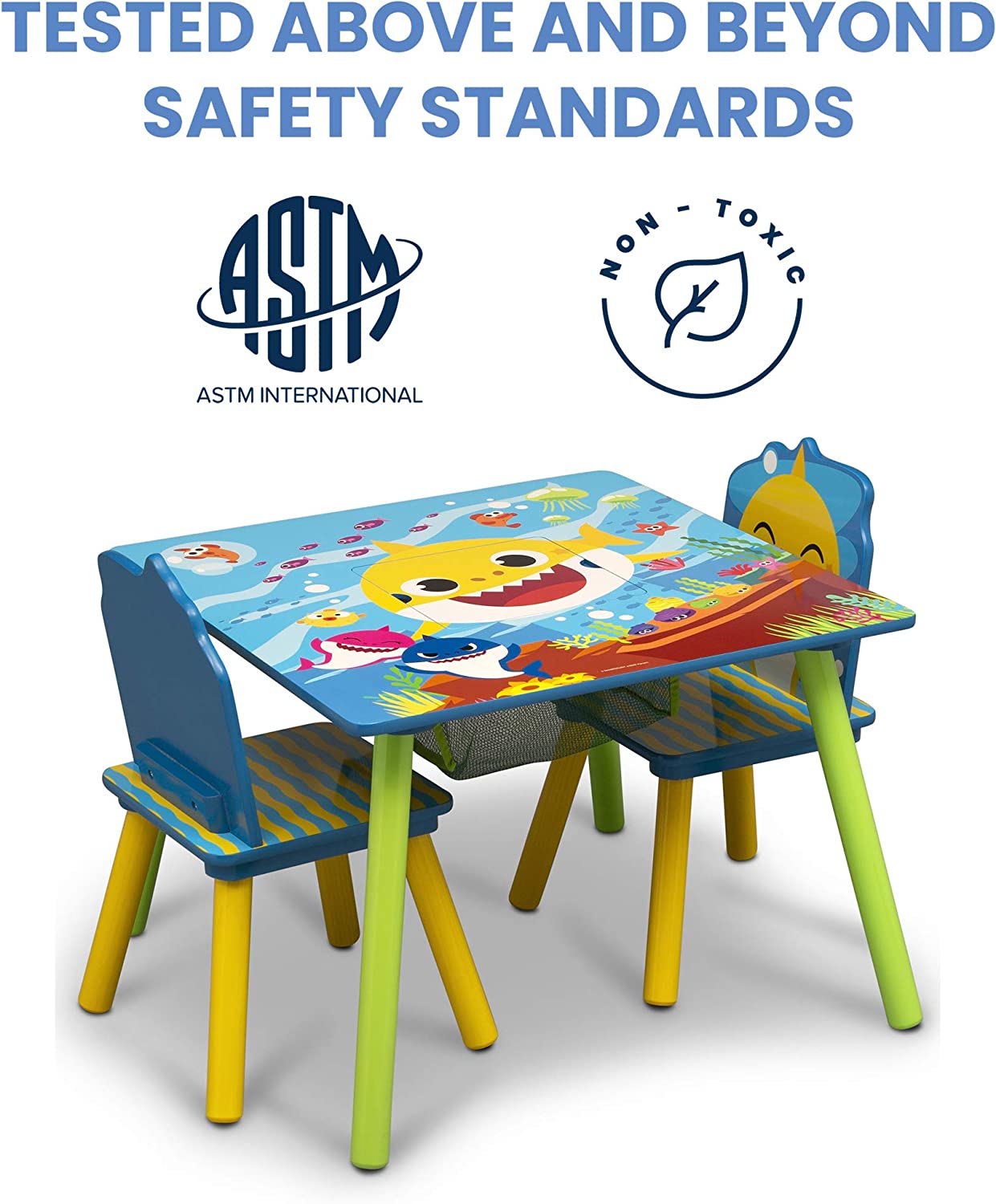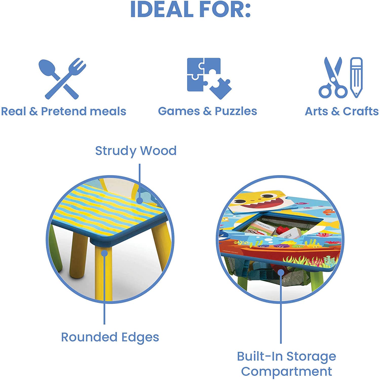 Delta Children Kids Table Storage (2 Chairs Included) -Ideal for Arts & Crafts. Snack Time. Homeschooling. Homework & More. Baby Shark. 3 Piece Set