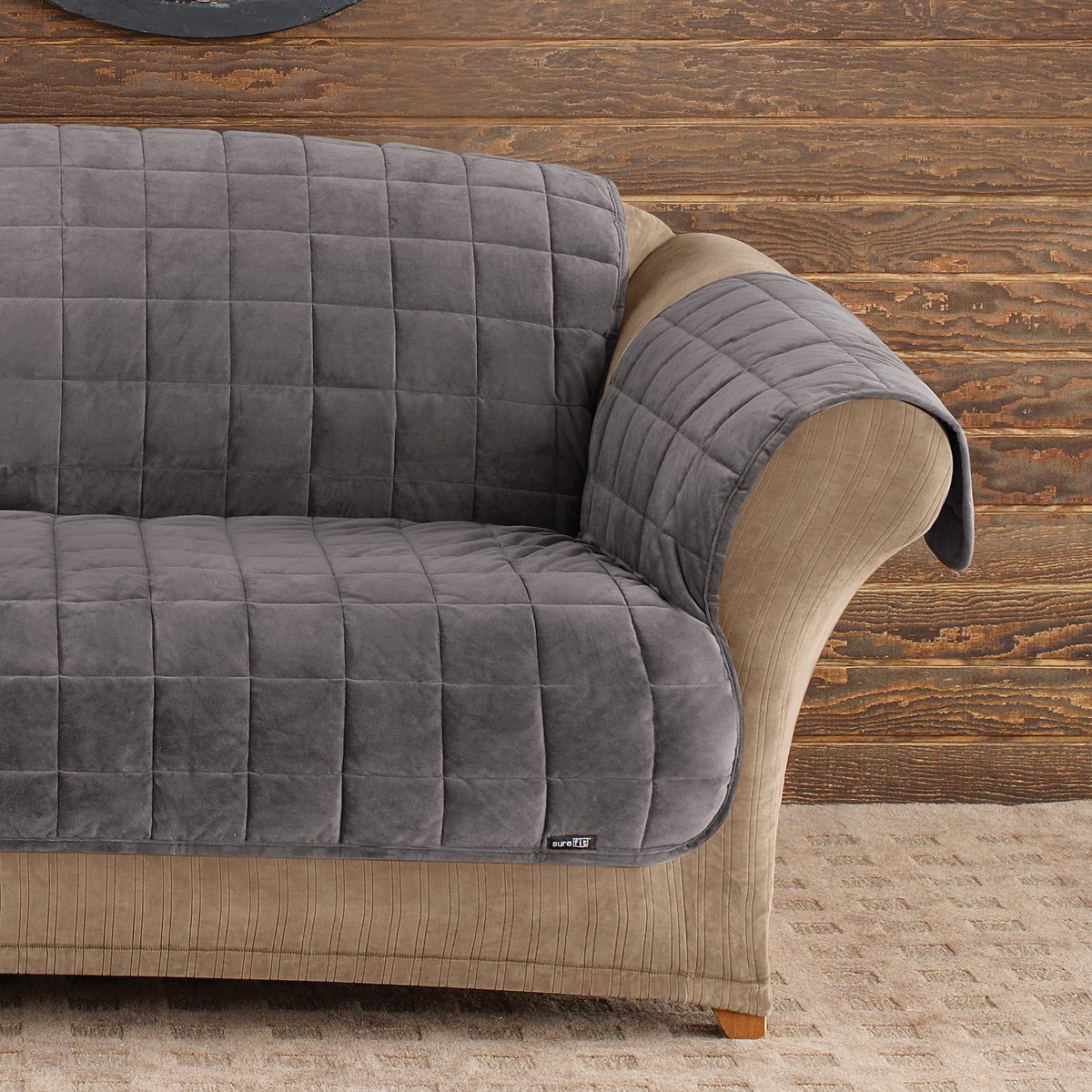 Sure Fit Home Décor Furniture Protector Deluxe Pet Sofa Cover. Polyester. Machine Washable. Sofa. Dark Gray