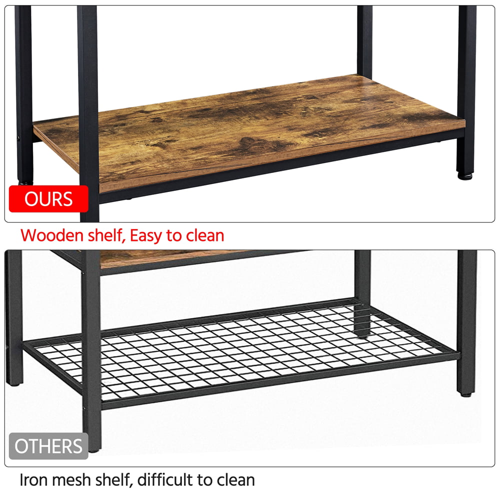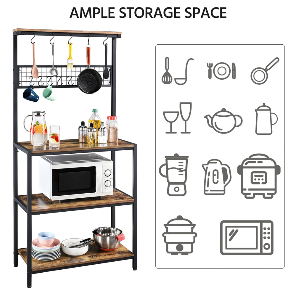 Alden Design 67″ Wooden Kitchen Bakers Rack with Storage Shelves & 10 Hooks. Rustic Brown