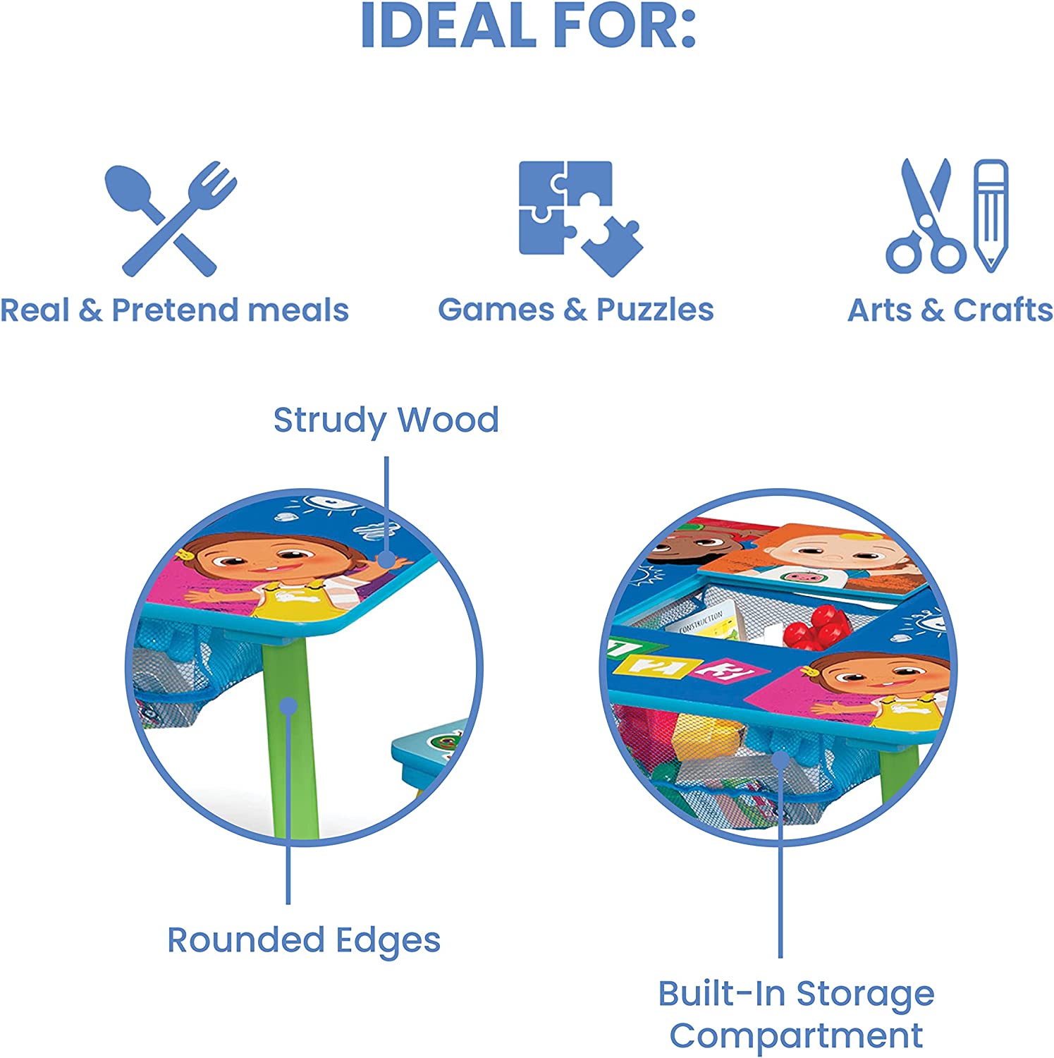 Delta Children Kids Table and Chair Set with Storage (2 Chairs Included) - Greenguard Gold Certified - Ideal for Arts & Crafts. Snack Time. Homeschooling. Homework & More. CoComelon
