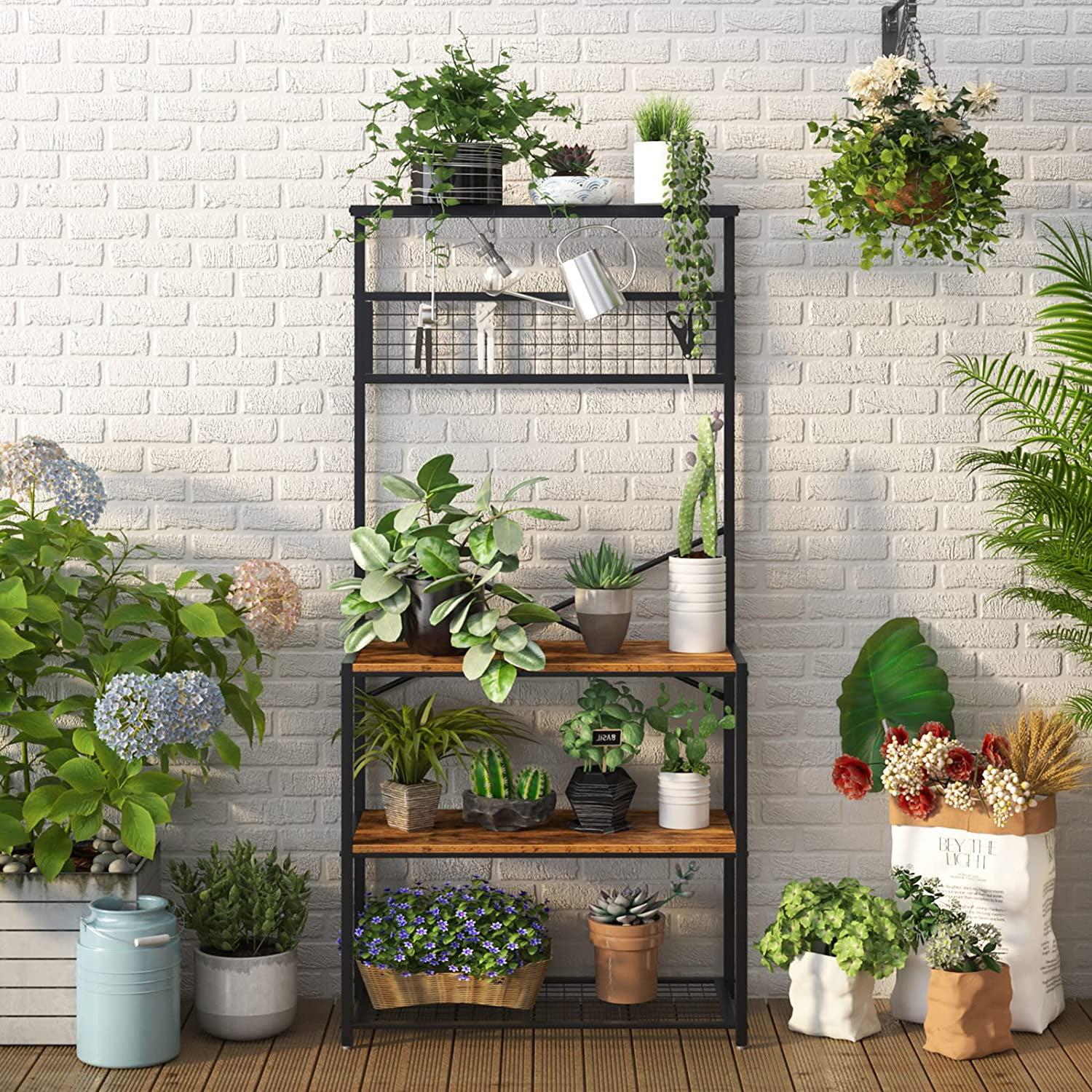 SmileMart Industrial Baker's Rack Utility Storage Shelf for Kitchen. Rustic Brown