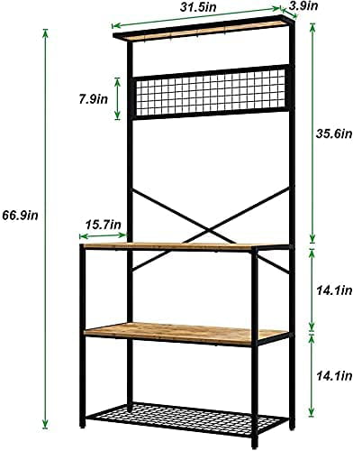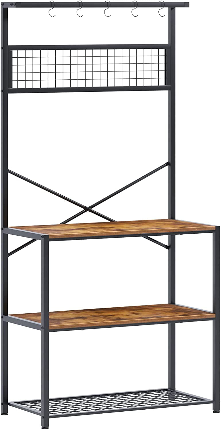 SOGES Kitchen Bakers Racks Kitchen Baker Storage Shelf Rack 3-Tier for Kitchen Standing Racks Brown