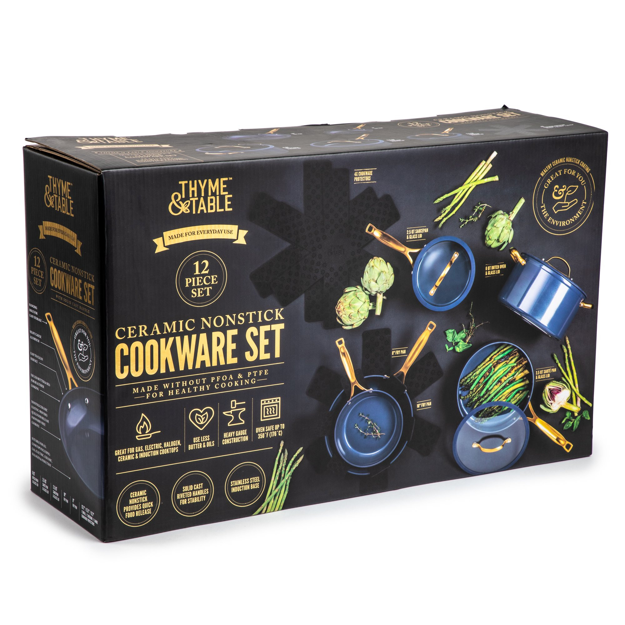 Thyme & Table Non-Stick Pots and Pans 12-Piece Cookware Set. Blue