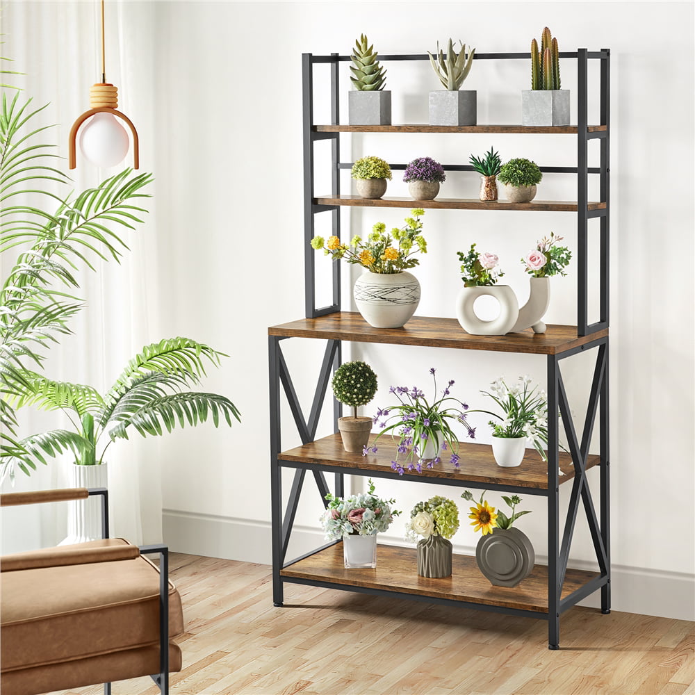 SmileMart 5-Tier Industrial Baker-s Rack Storage Shelf with Metal Frame for Kitchen. Rustic Brown