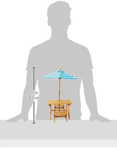 KidKraft Outdoor Wooden Table & Bench Set with Striped Umbrella. Children-s Backyard Furniture. Turquoise and White. Gift for Ages 3-8