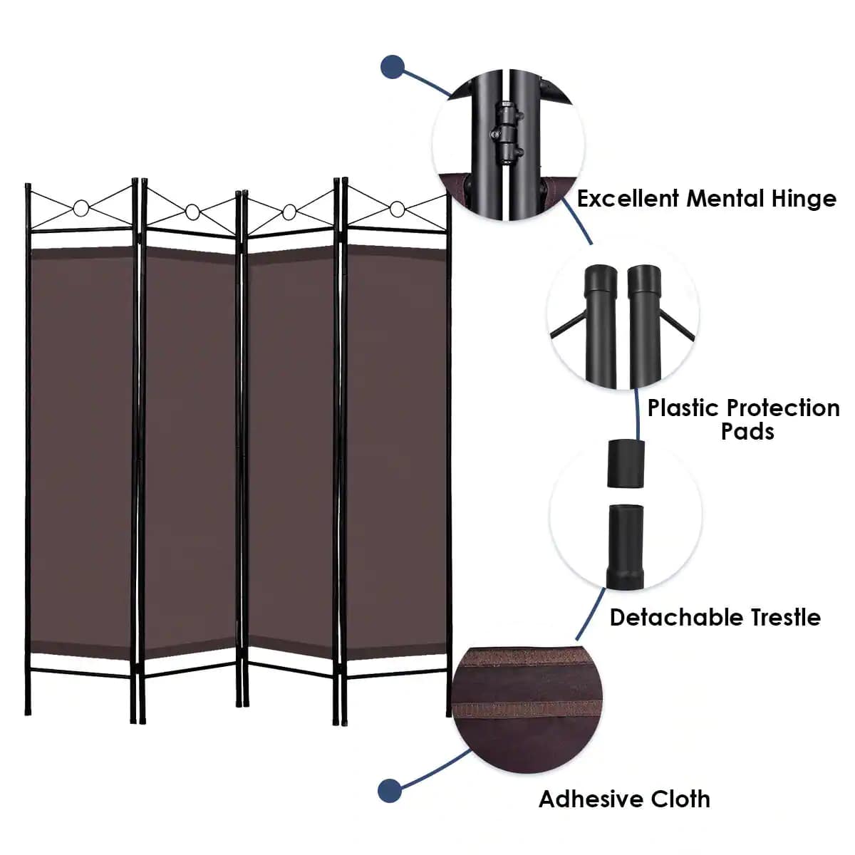 71 in. Brown 4-Panel Room Divider Privacy Screen with Metal Frame