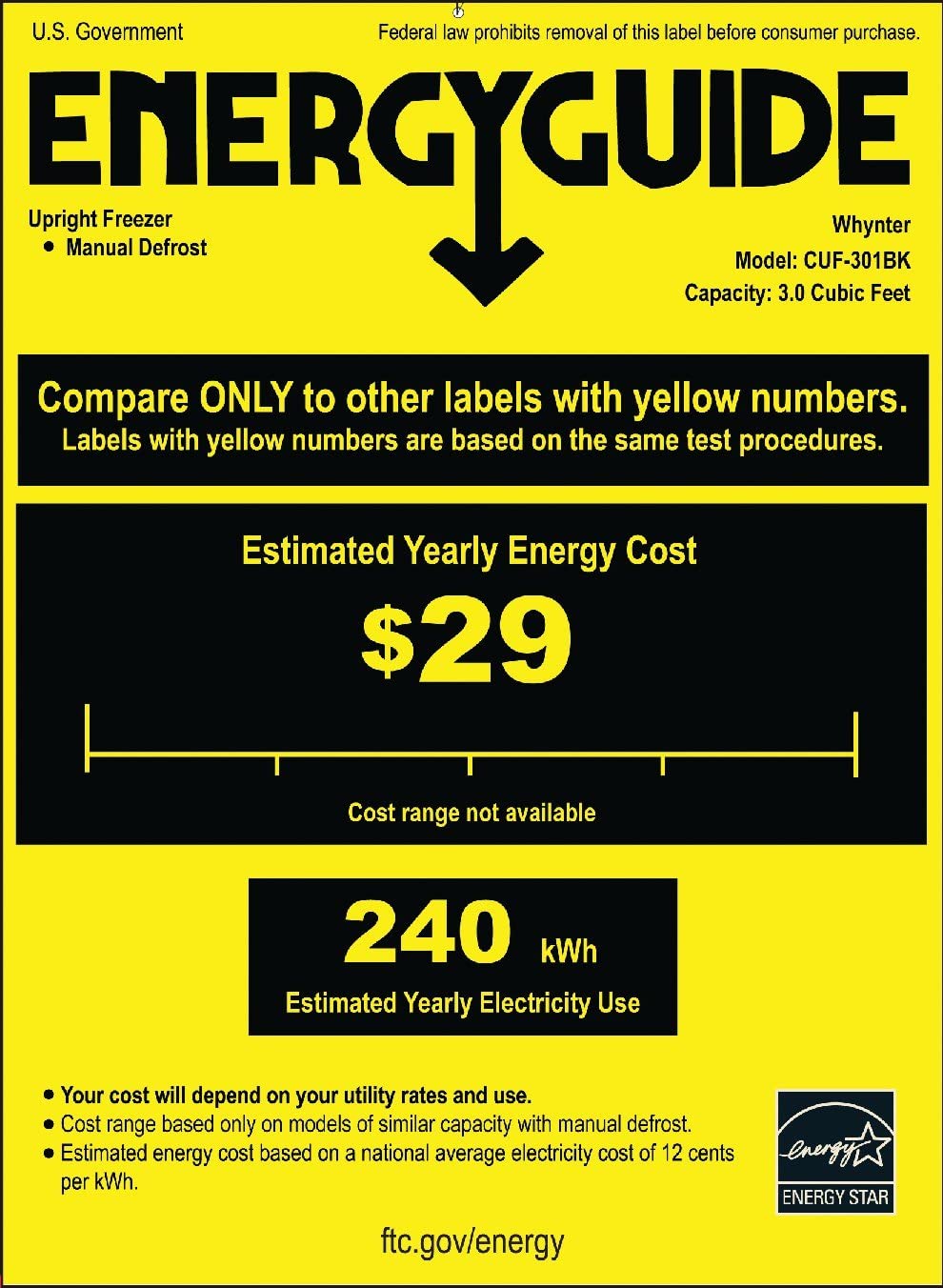 Whynter CUF-301BK 3 cu. ft Energy Star Upright Freezer with Lock – Black
