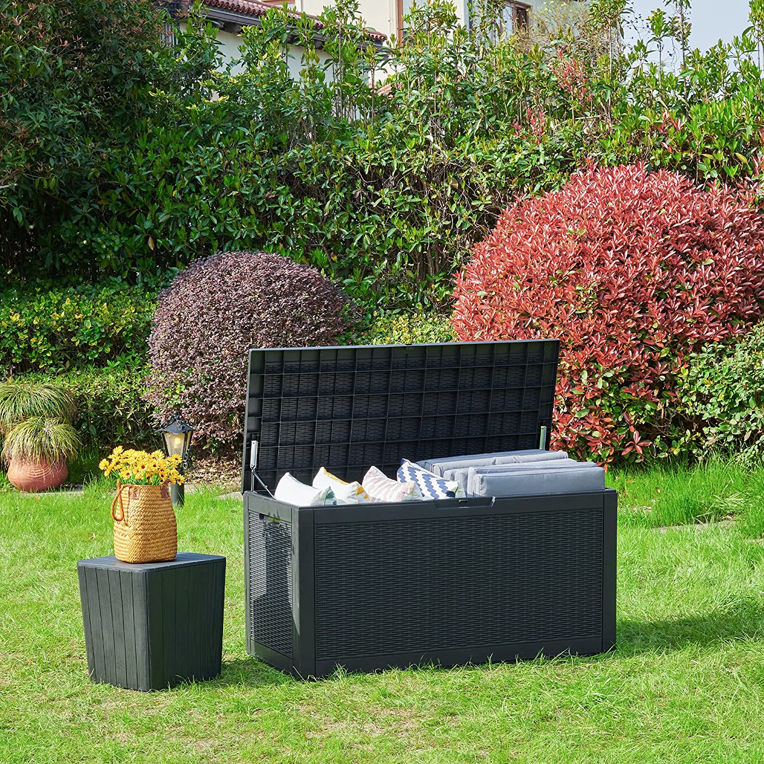 YITAHOME 100 Gallon Large Resin Deck Box Outdoor Storage Boxes for Patio Furniture. Outdoor Cushions. Garden Tools and Pool Supplies-Waterproof.Lockable (Black)
