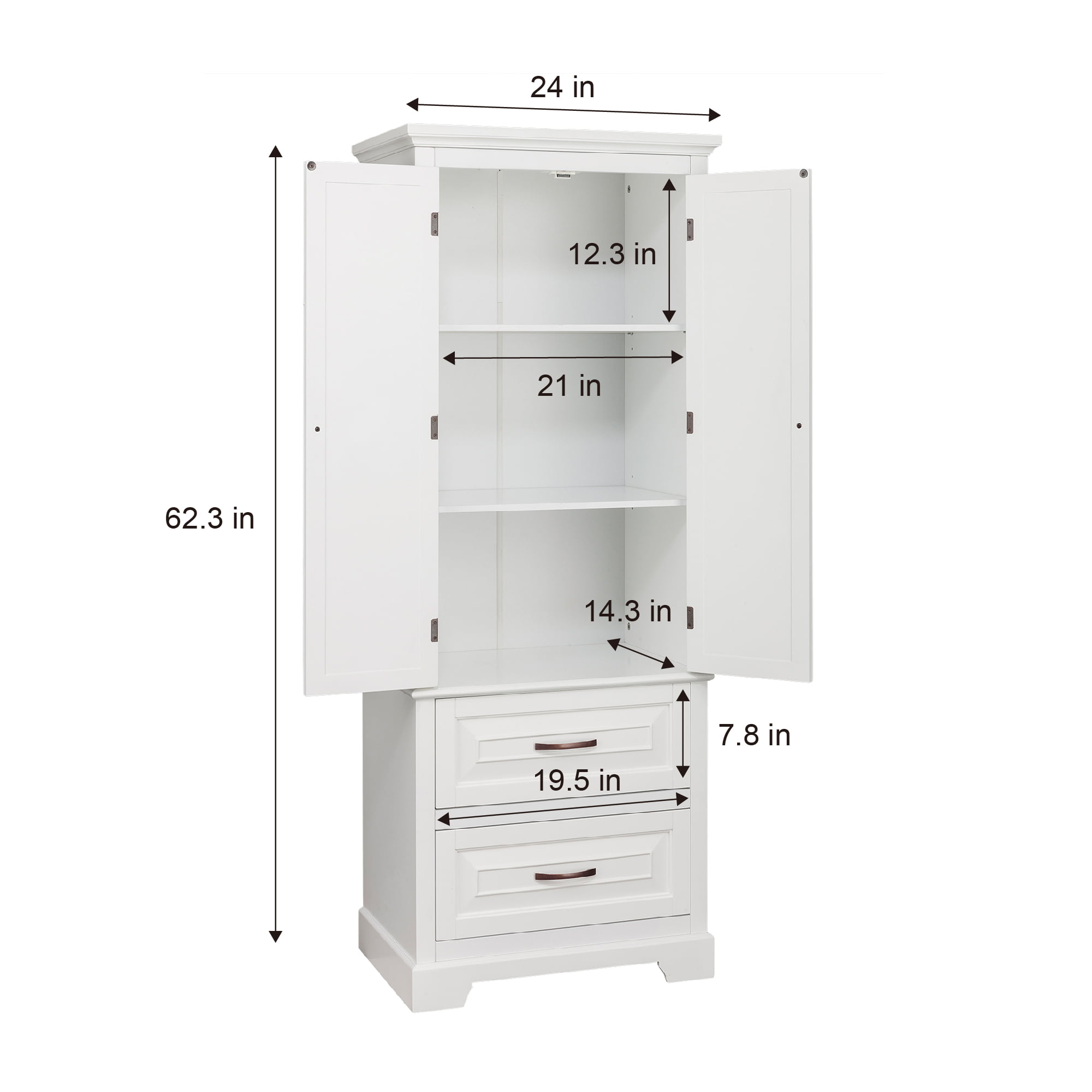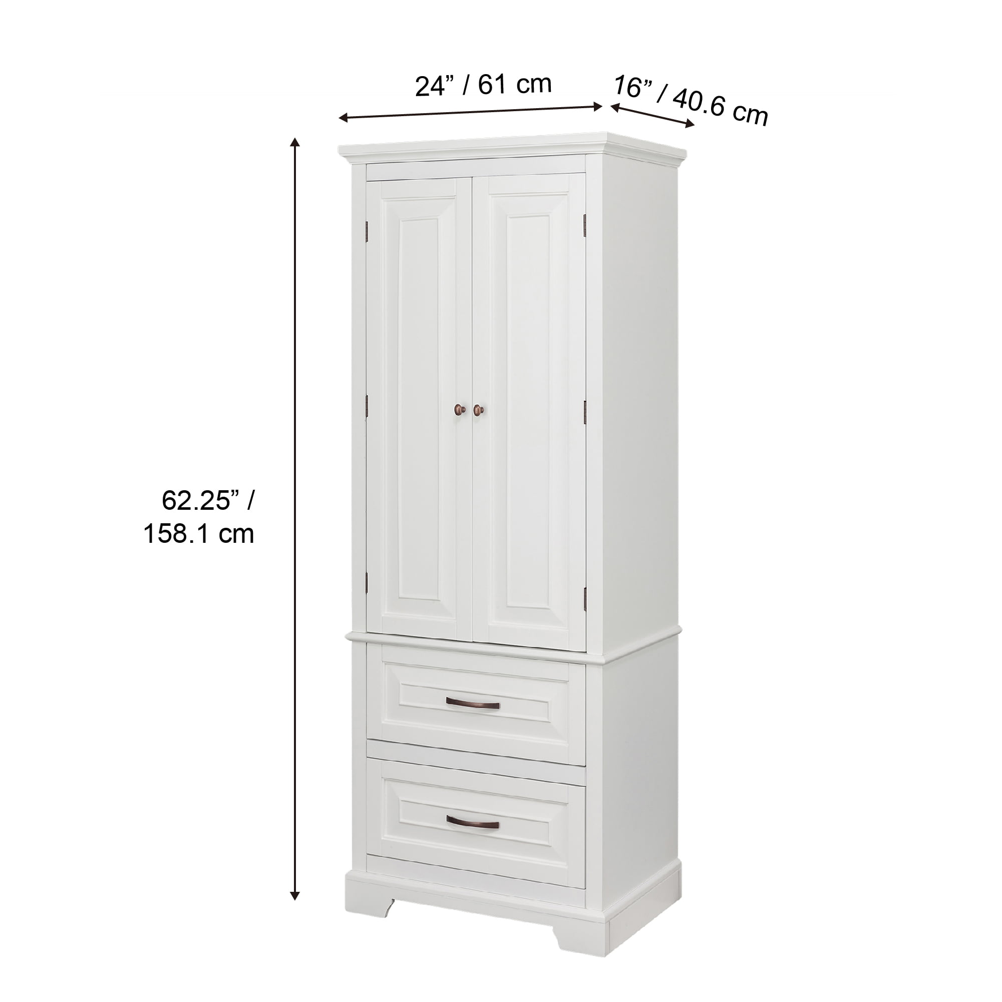 Teamson Home St. James Wooden Linen Tower Cabinet with 2 Drawers. White