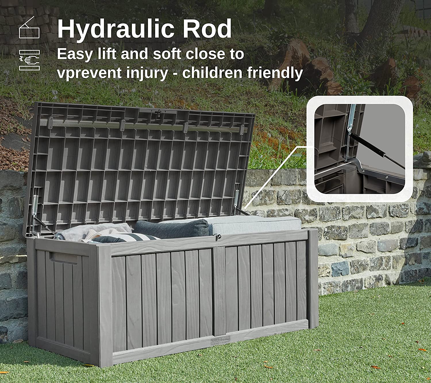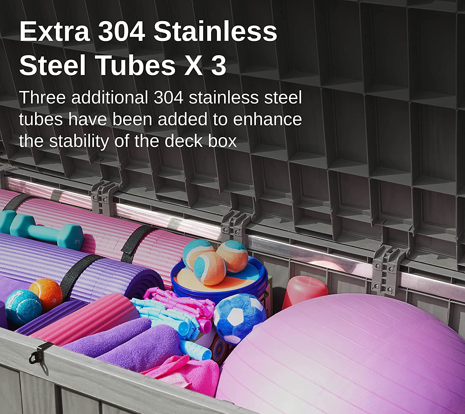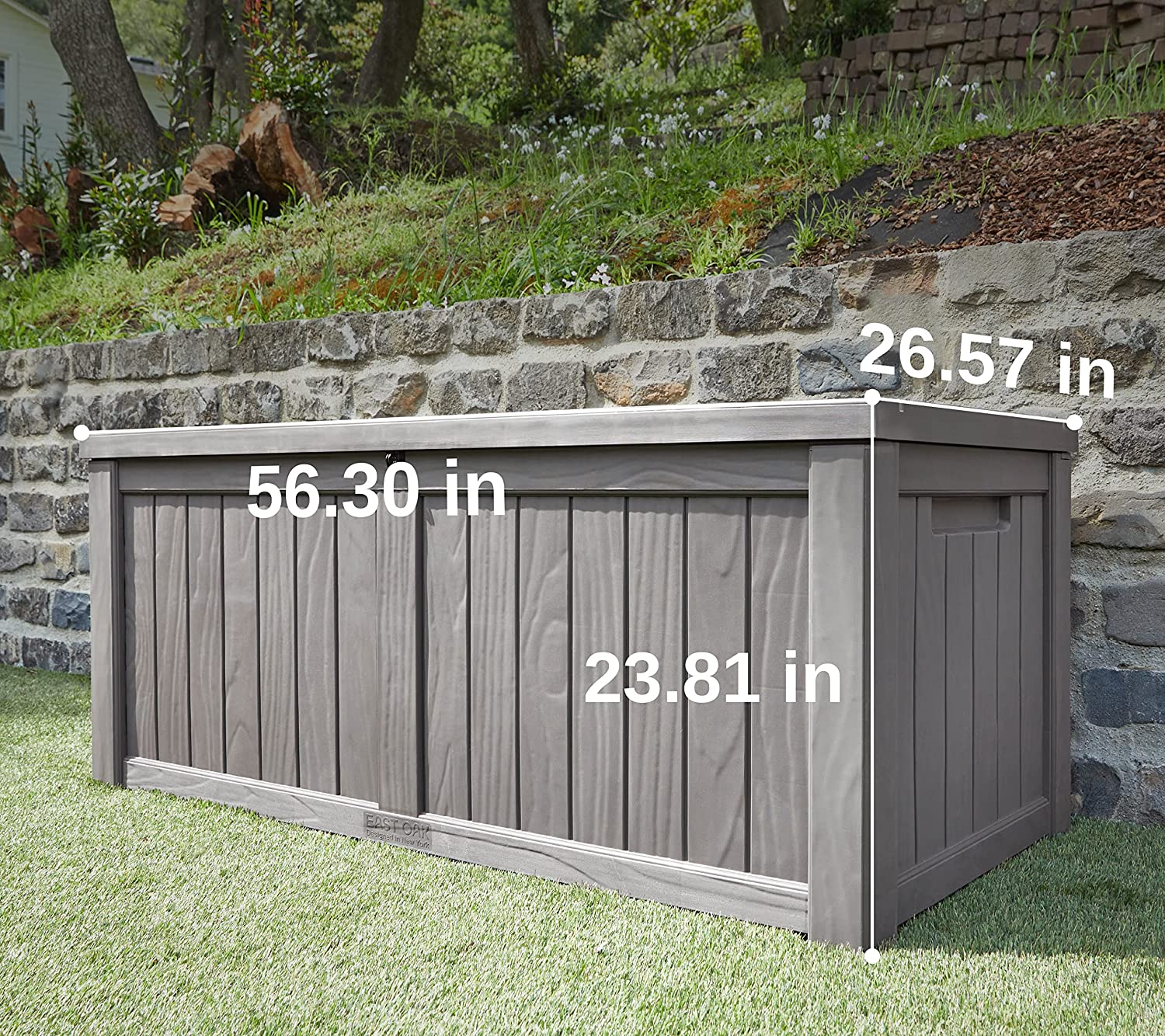EAST OAK 120 Gallon Large Deck Box with Durable Stainless Steel Construction for Patio Furniture. Outdoor Cushions. Garden Tools and Sports Equipment. Weather Resistant Resin. Padlock Lock Included
