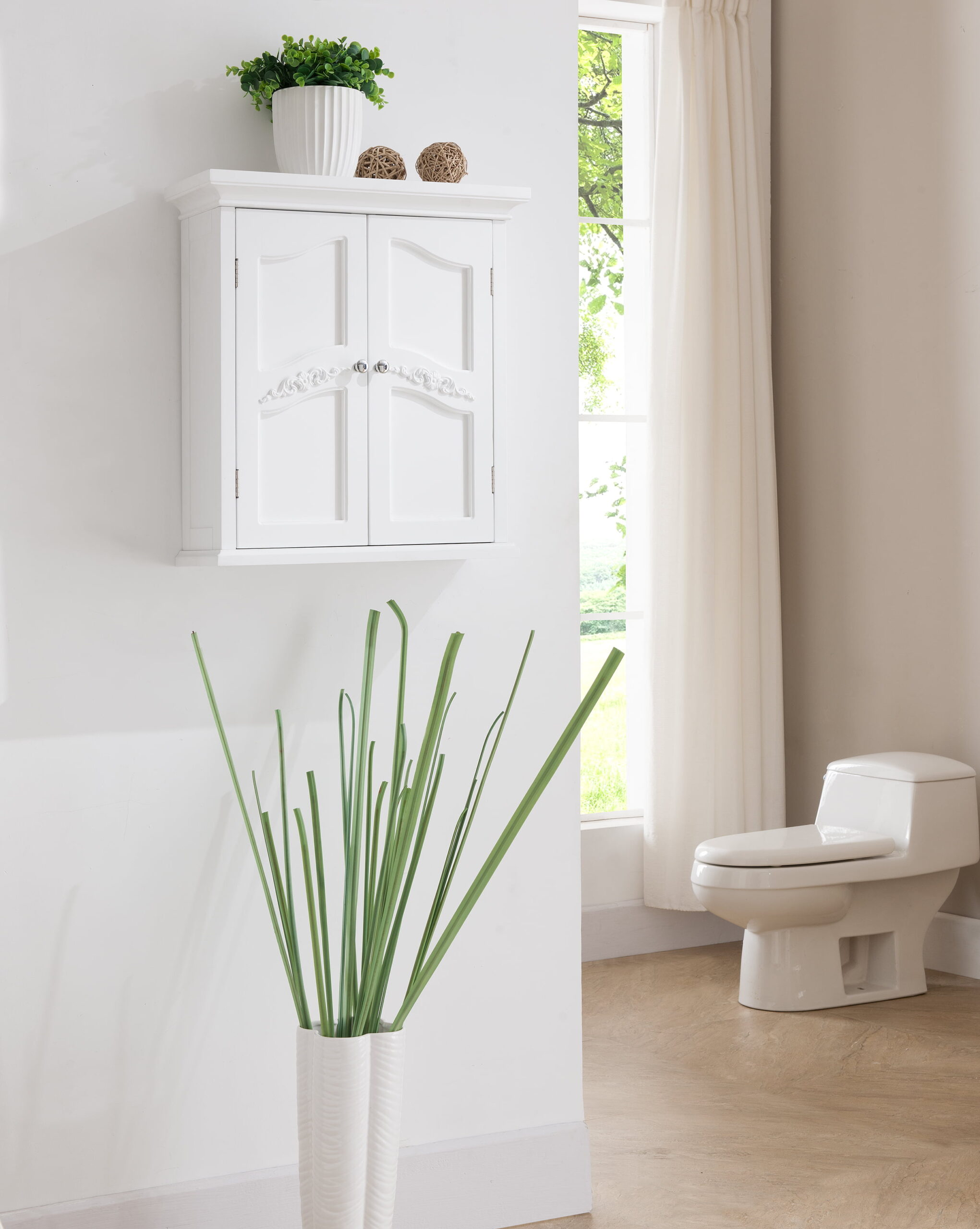 Teamson Home Versailles Wooden Wall Cabinet with 2 Shelves. White
