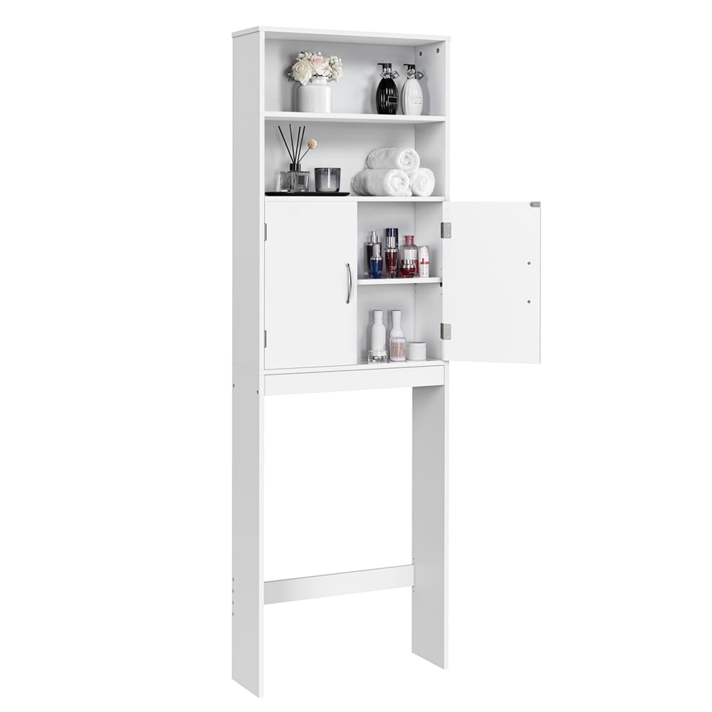 SMILEMART 8″ Width Wooden Over Toilet Storage Cabinet with Door for Bathroom. White