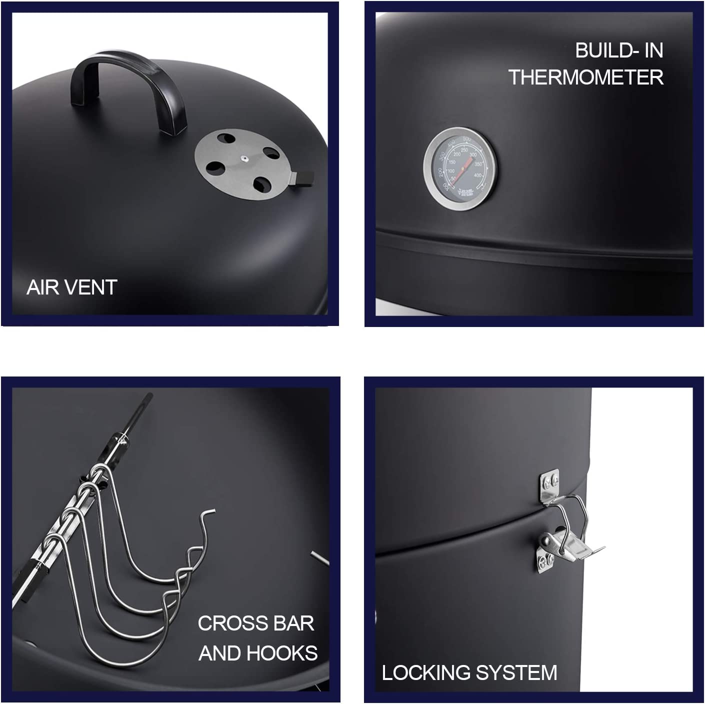 Realcook Vertical 17 Inch Steel Charcoal Smoker. Heavy Duty Round BBQ Grill for Outdoor Cooking. Black