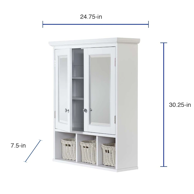 allen + roth 24.75-in x 30.25-in Surface Mount White Mirrored Rectangle Medicine Cabinet
