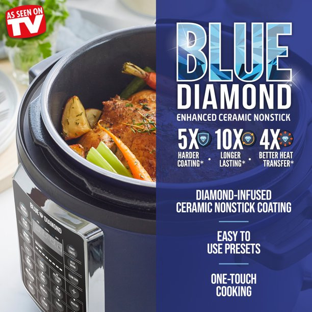 Blue Diamond Weekday Wonder 16-in-1 Diamond-Infused Nonstick 6 Quart Pressure Cooker
