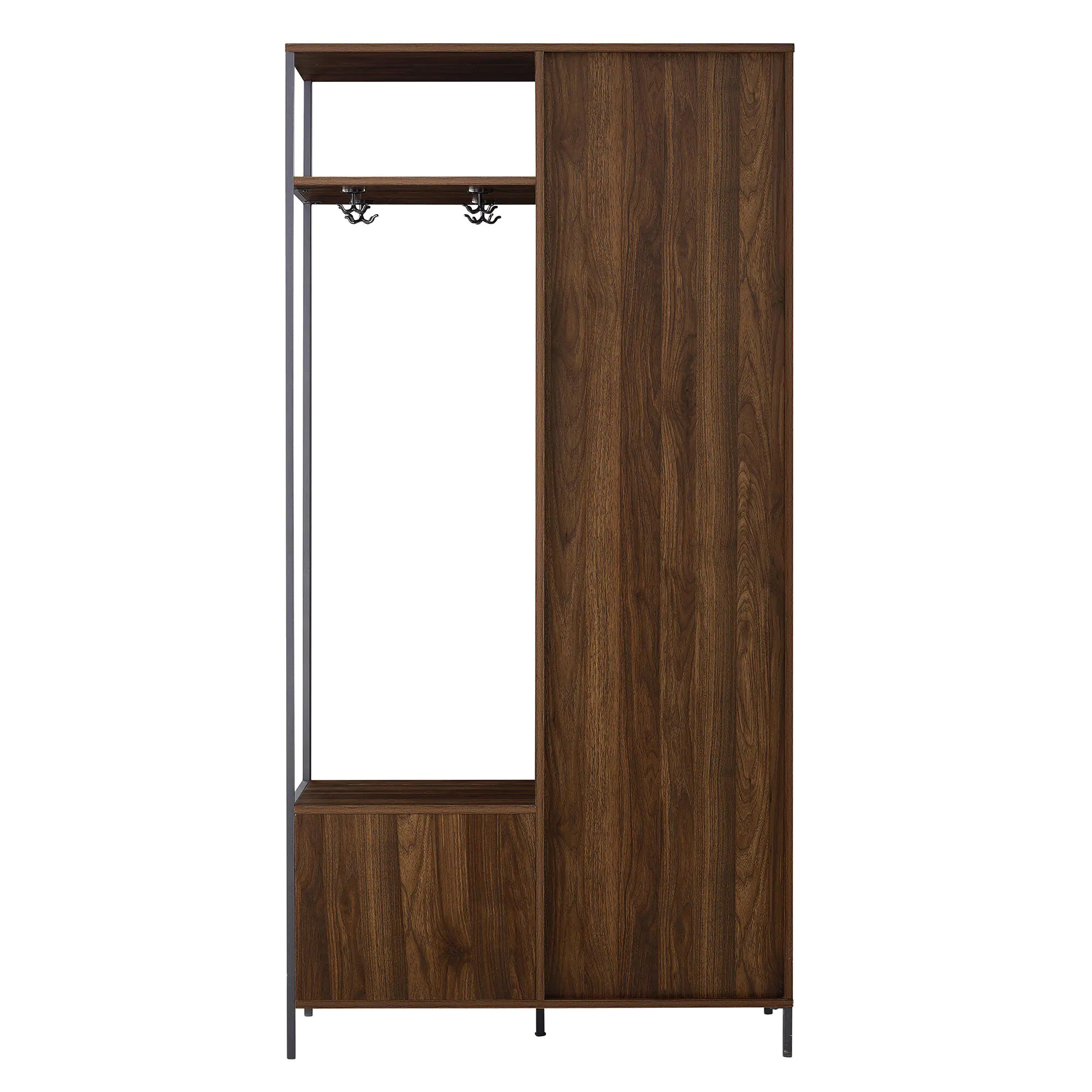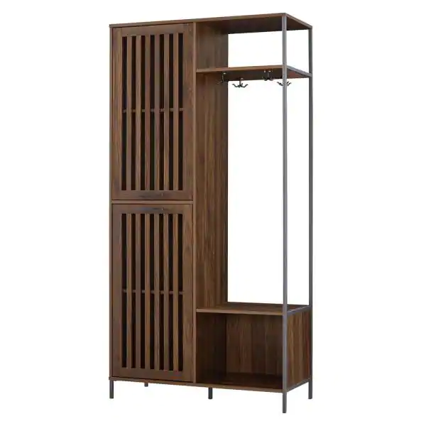 Welwick Designs 72 in. Dark Walnut Slat Door Metal and Wood Hall Tree